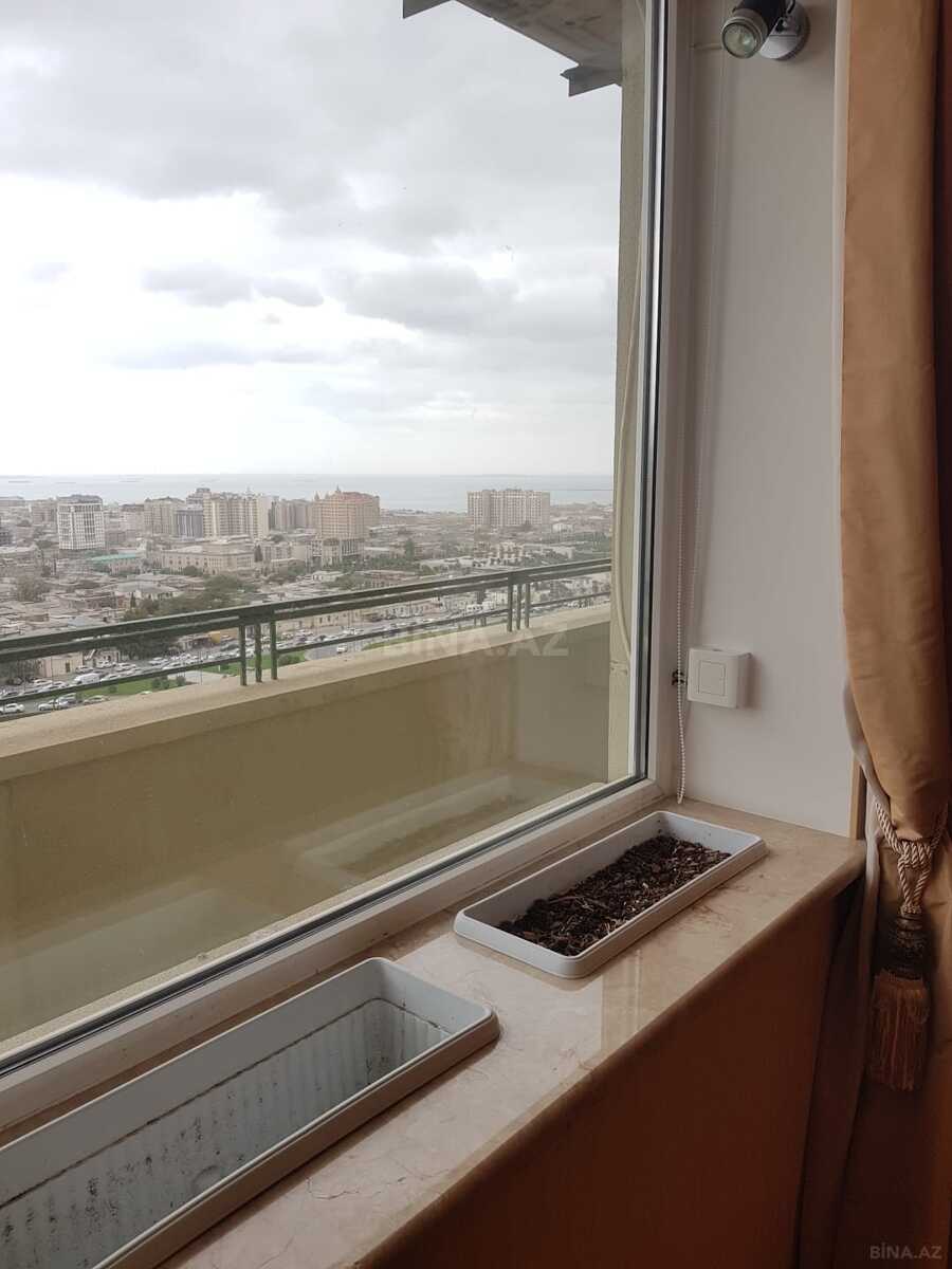 Elmlerde cox prestijli erazide radnoy 4 otaqli, sehere, denize ponramali menzil satilir. Şexsi temir olunmus menzildir. Az yasanilib. Aciq eyvani var. 2 sanuzeli var. Yer Italyan parketidir. Qapilar qirmuzi aqacdandir. Menzilde gorunen her sey qalir, pianino istisna. Vatsap aktivdir.