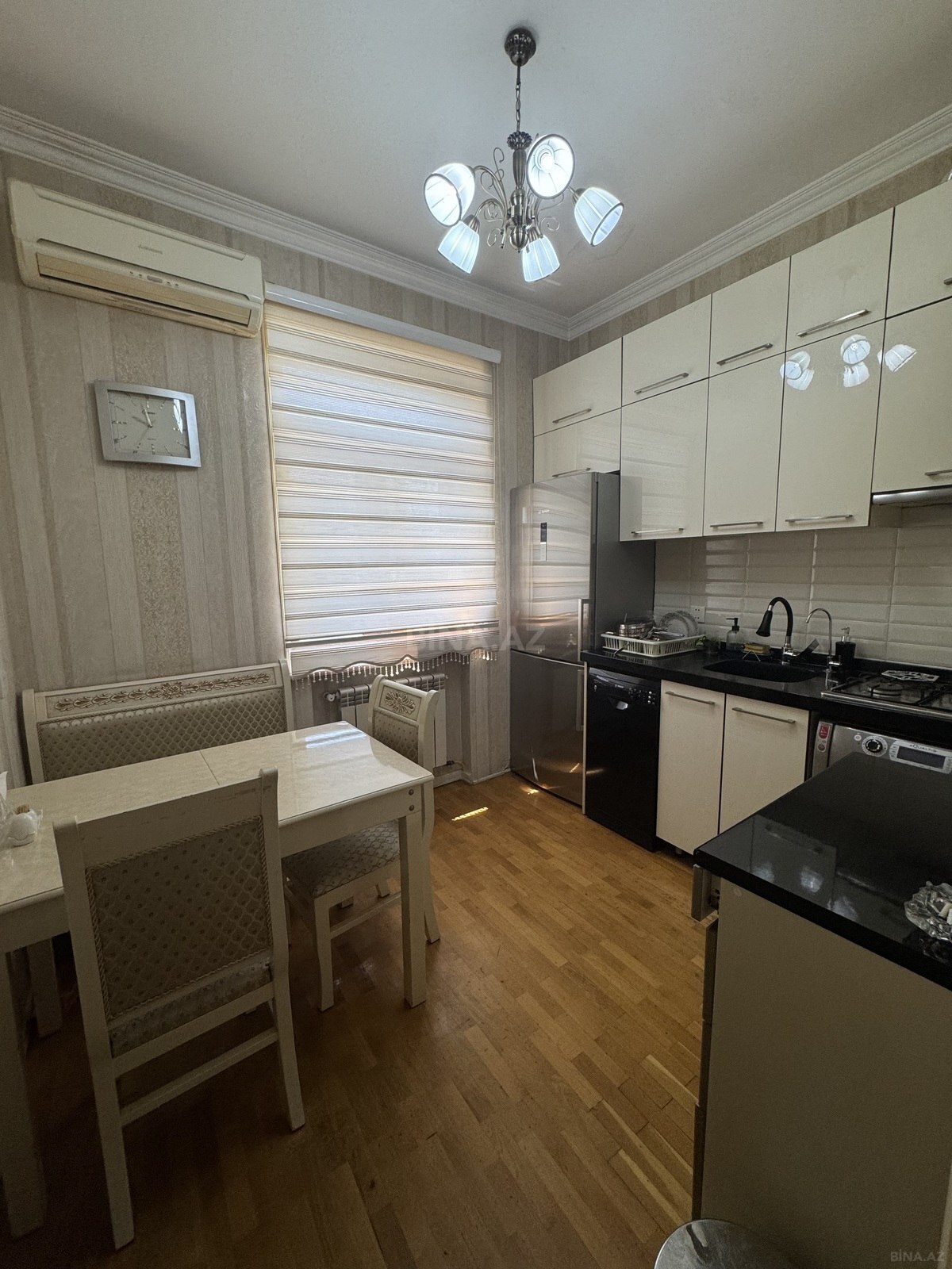 Qara Qarayev metrosu yaxınlığında, ideal lokasiyada tam əşyalı mənzil satışda! Qara Qarayev prospektinə baxan, metrodan cəmi 5 dəqiqəlik məsafədə yerləşən klassik “Stalinka” layihəli mənzil satışa təqdim olunur. Mənzil orta mərtəbədə və orta blokda yerləşir, həmçinin yelçəkən planlaşdırmaya malikdir. Mənzil tam əşyalı satılır və bütün mebellər yeni sahibinə qalacaq. Ev keyfiyyətli məişət texnikaları ilə təchiz olunub: BOSH, Mitsubishi və Hotpoint markaları. Bütün otaqlarda kondisioner mövcuddur. Qonaq otağındakı mebellər klassik üslubda, natural ağacdan hazırlanmışdır. Mənzilin döşəməsi parketdir. İnfrastruktur baxımından çox əlverişli ərazi: • Sevinc Mall-un düz yanında • Avtobus dayanacağı binanın yanında • Metroya piyada məsafə • Yaxınlıqda məktəblər, apteklər, salonlar və müxtəlif mağazalar ‼Əlavə məlumat və baxış üçün YALNIZ WHATSAPP ilə əlaqə saxlaya bilərsiniz.