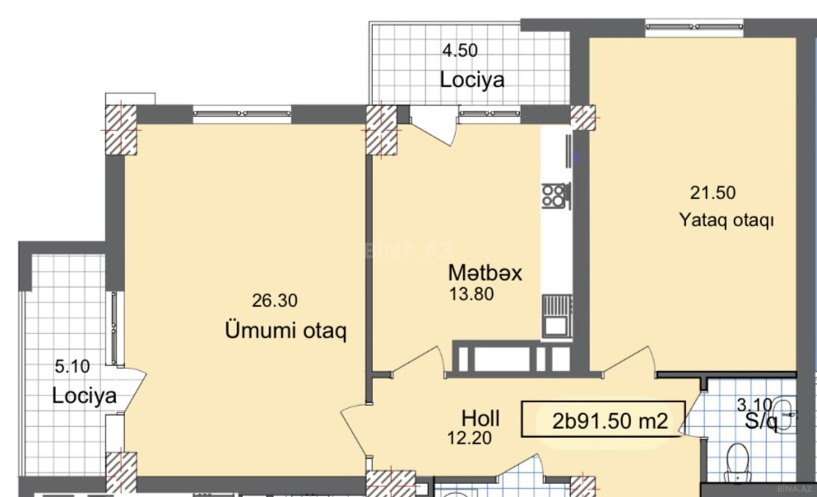 Sahə91m²