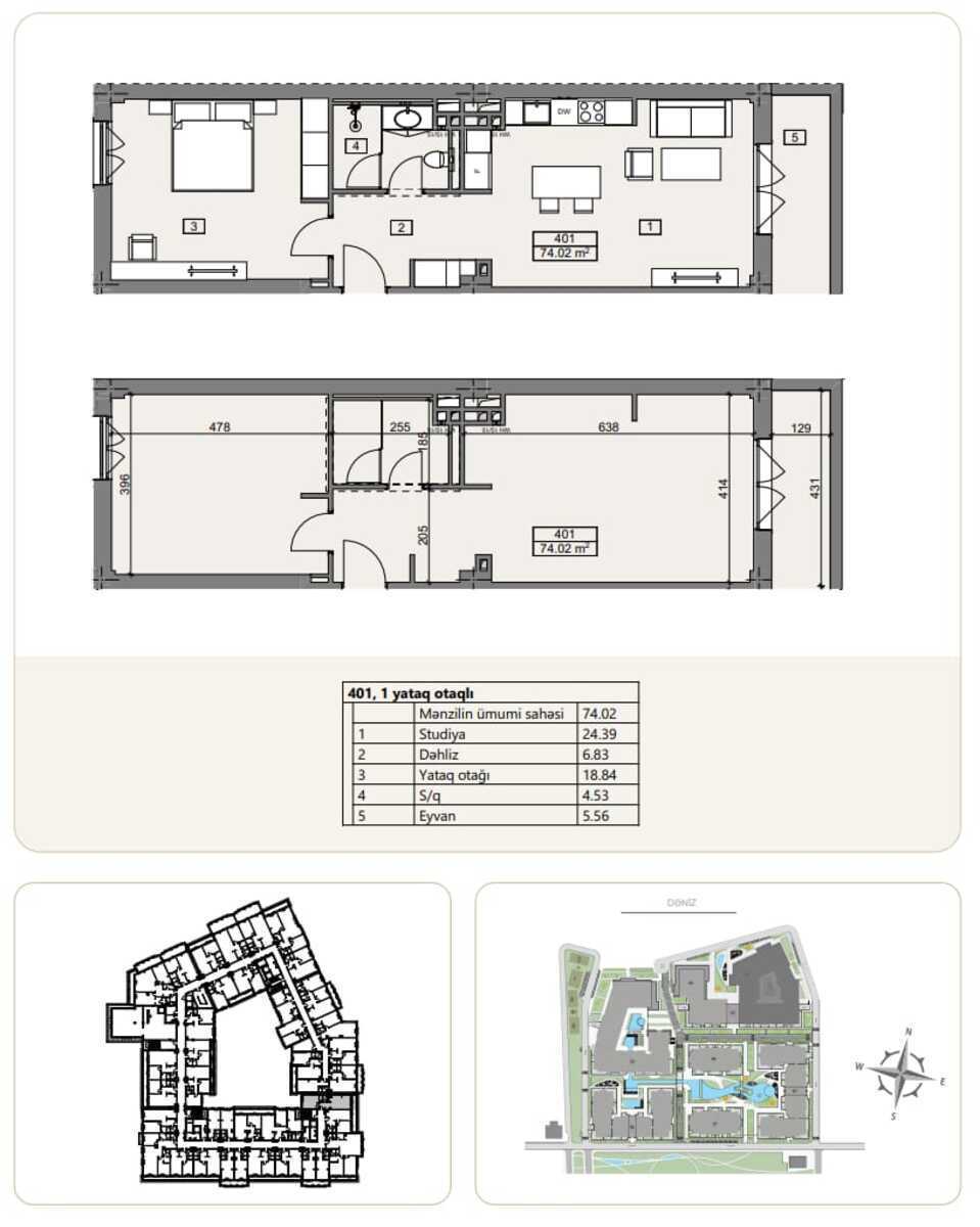 Sahə74m²