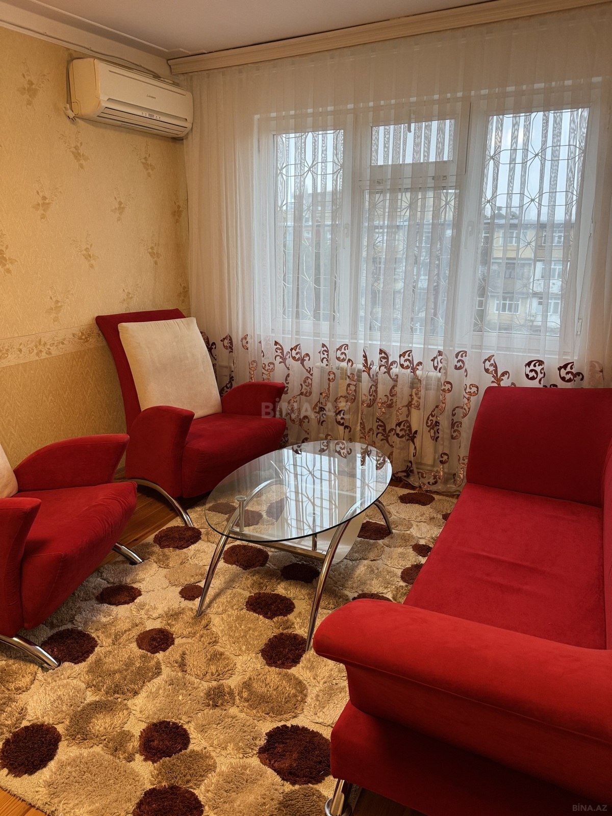 Mənzil Neftçilər metrosuna 6-7 dəq məsafadə yerləşir.yaxınlıqda market,baxça,məktəb mövcuddur. Tam əşyalı verilir.şəkildə TV olmasada alınıb qoyulacaq. Wife, 2 ədəd kondisaner.kombi. Uzun müddətli Ailəyə verilir. Tələbə xanımlarada vermək olar(başqa şərtlər ilə) Depozit götürülücək.verilən depozit mənzildən çıxanda qaytarılacaq. Vasitəçilərdən çox xaiş edirəm narahat etməsinlər.