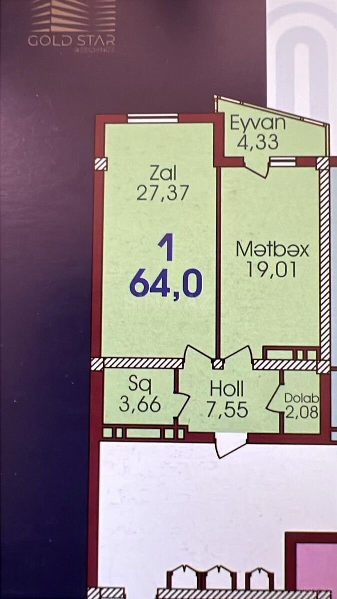 28 May metrosunda Satılır 1 otaqlı 64 m² Yeni tikili
