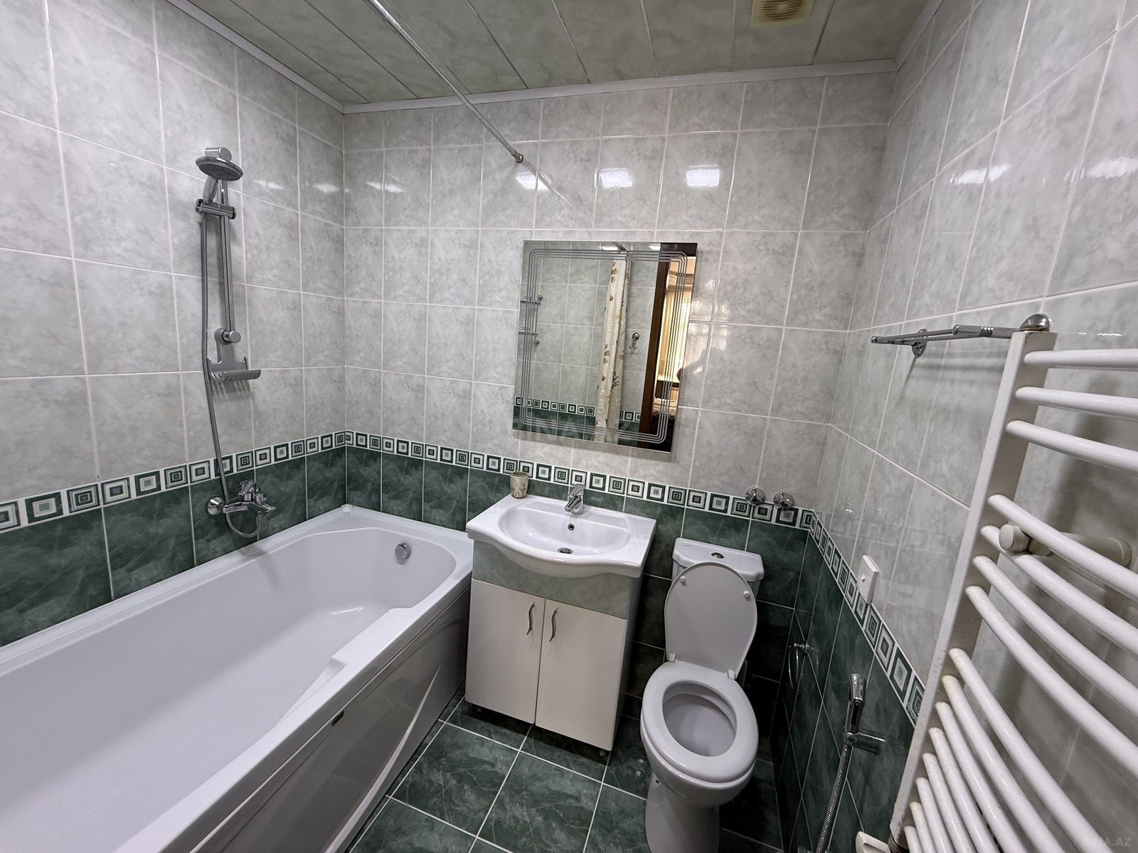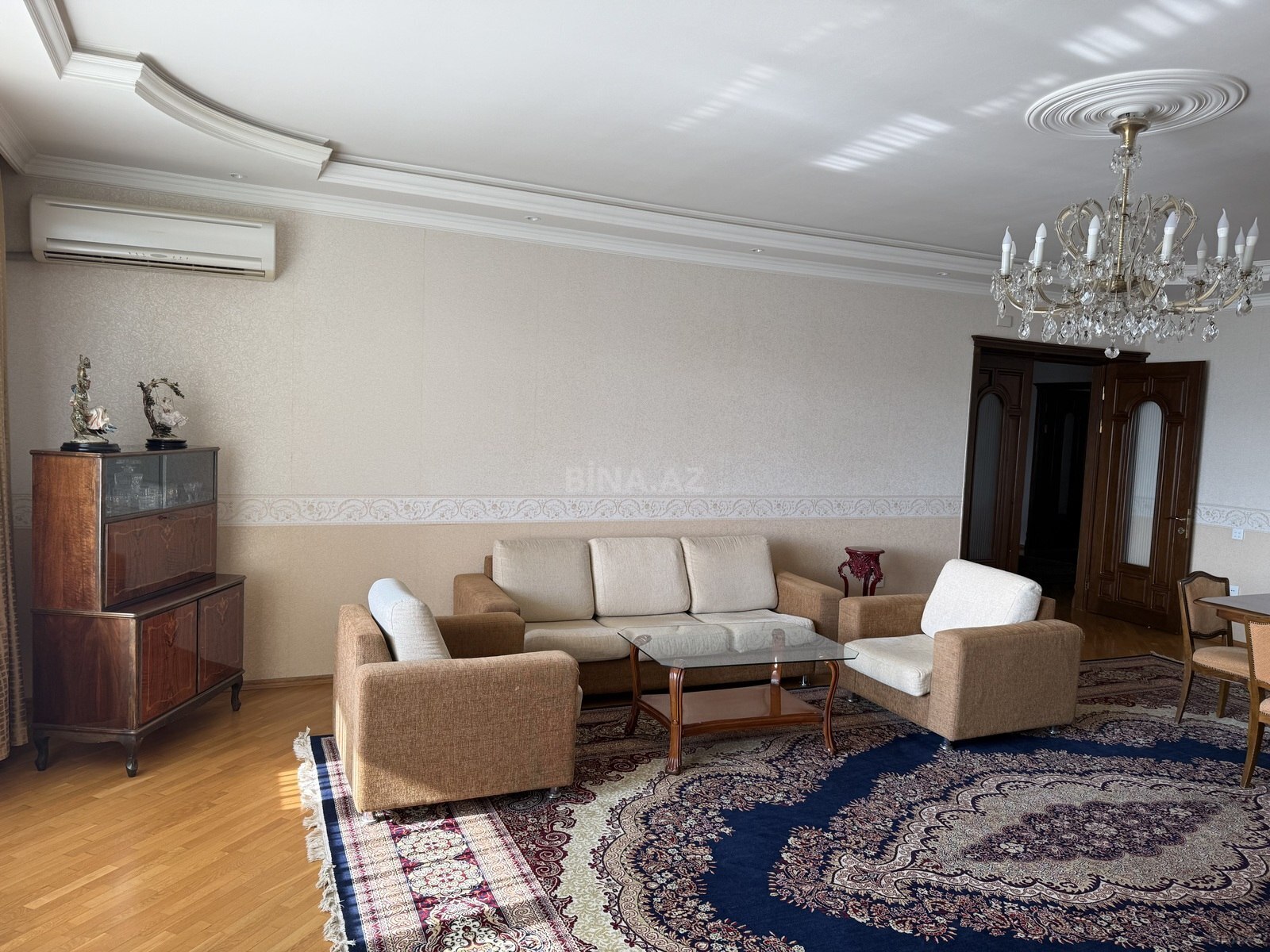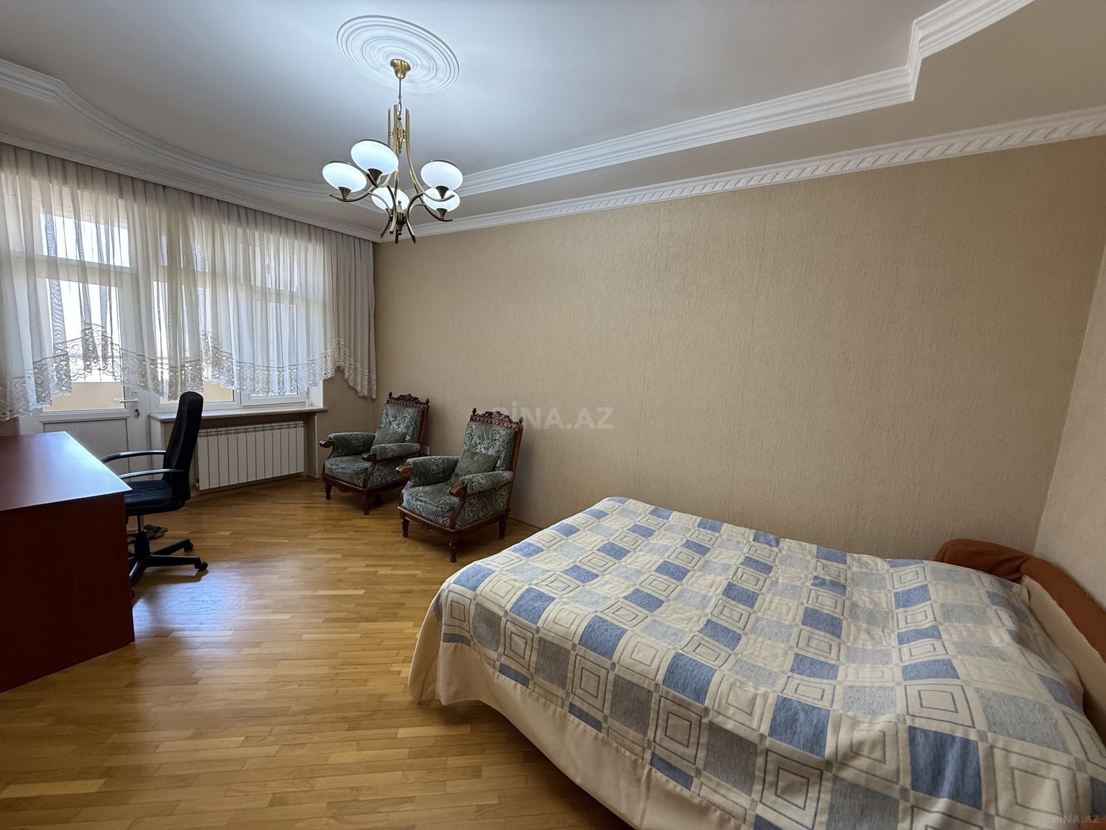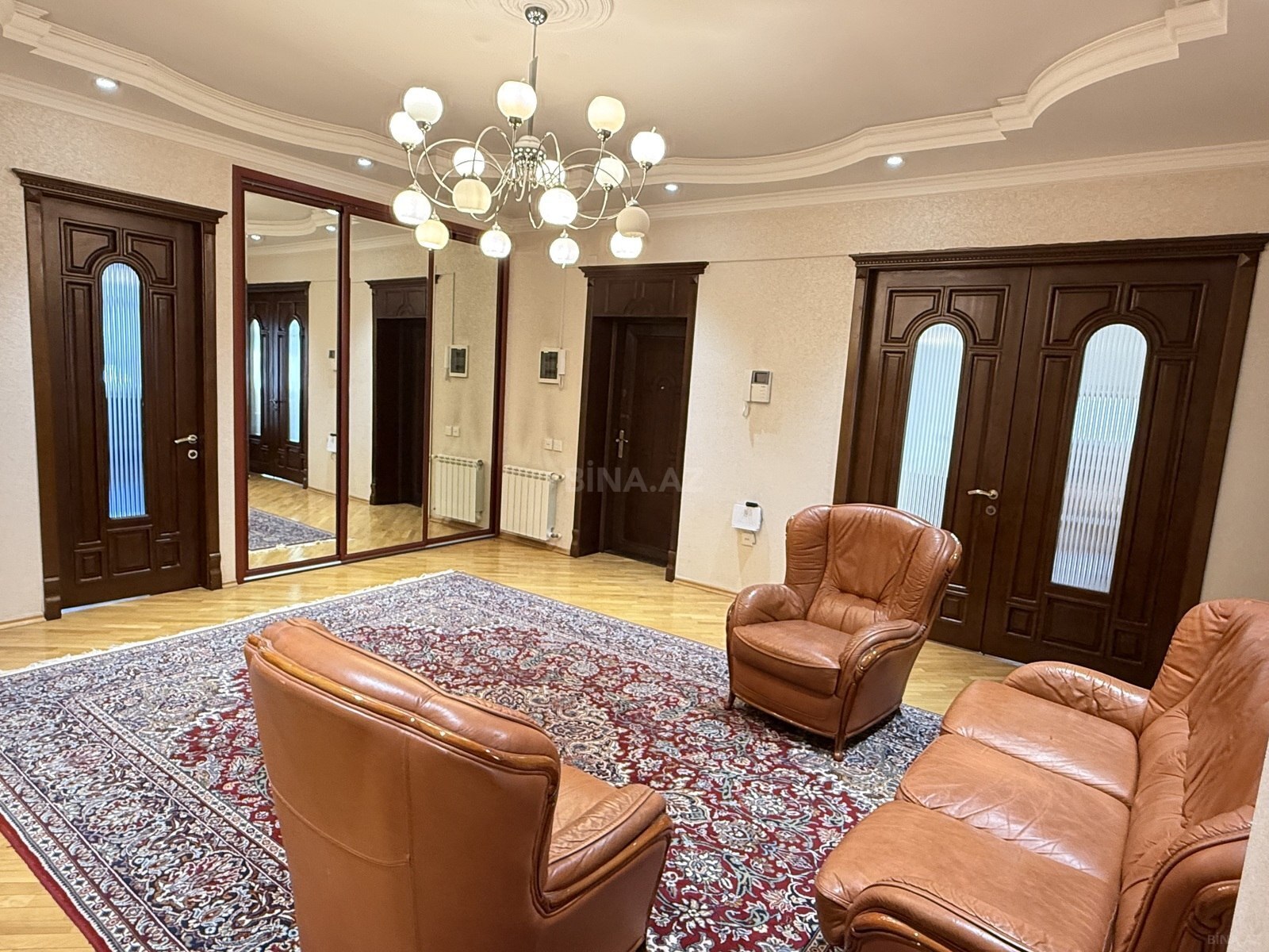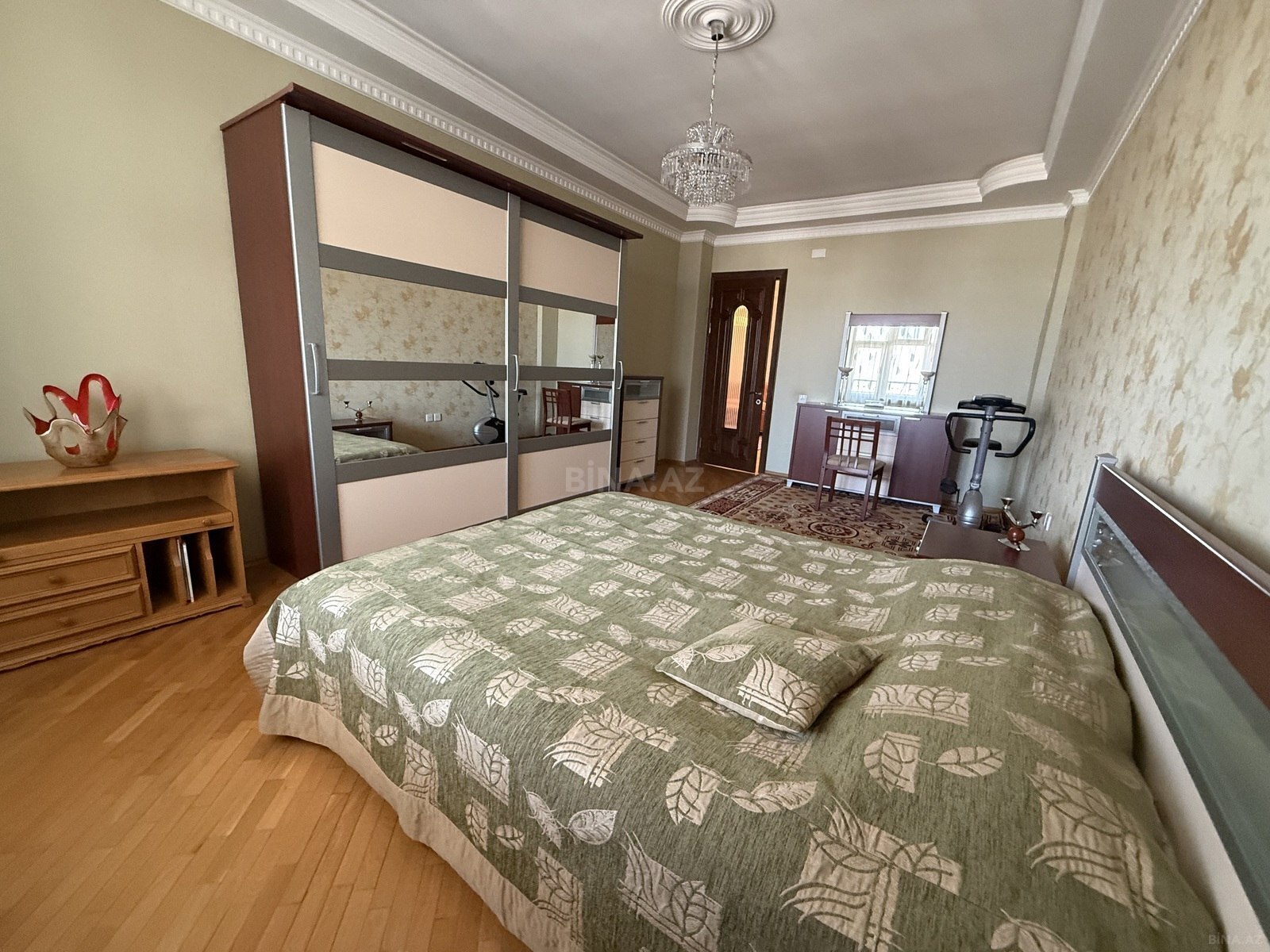 4 otaqlı iki sanitar qovşağı olan , tam əşyalı mənzil . isitmə kombi sistemi ilədir Hər otaqda və mətbəxdə kondisioner vardır Soyuducu, paltaryuyan, qabyuyan ,paltarqurudan , mikrodalğalı soba , elektrikli soba və s Evlə üzbəüz Mərkəzi park yerləşir. Avtobus dayanacağı və Nizami metro stansiyası Etrafda çoxlu market , mağazalar , kafelər, restoranlar və s vardır