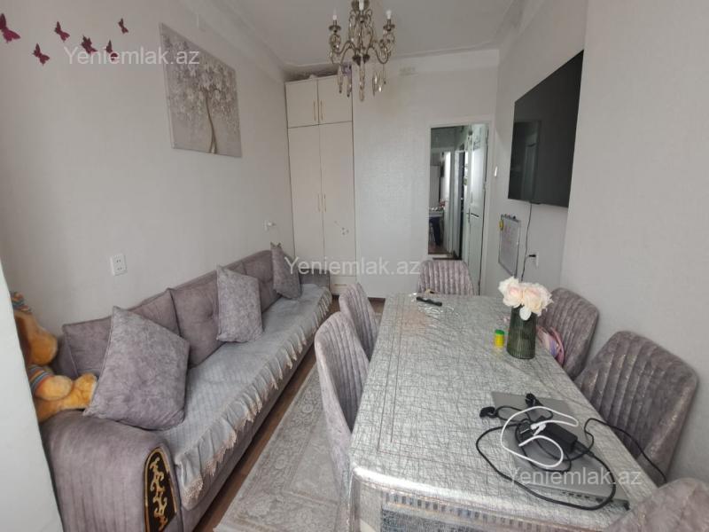 Mənzil 9 mərtəbəli binanın 8 ci mərtəbəsində yerləşir.Orta təmirlidir və səliqəli mənzildir.Hamam və ayaq yolu köhnə təmirlidir amma su axma falan yoxdu.Mənzil kombi sistemi ilə təchiz olunub.Bu ərazilərə yaxın normal şəraitli sənədi paket kupça olan həyət evi ilə barter etmək də olar(2 sot olsun minimum).146 saylı məktəbin yanında 9 mərtəbəli bina.Fikri ciddi olan şəxslər zəng etsin çünki evi satmaq səbəbim yeni ev almaqdır.
