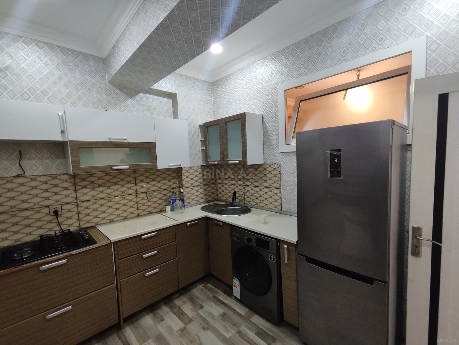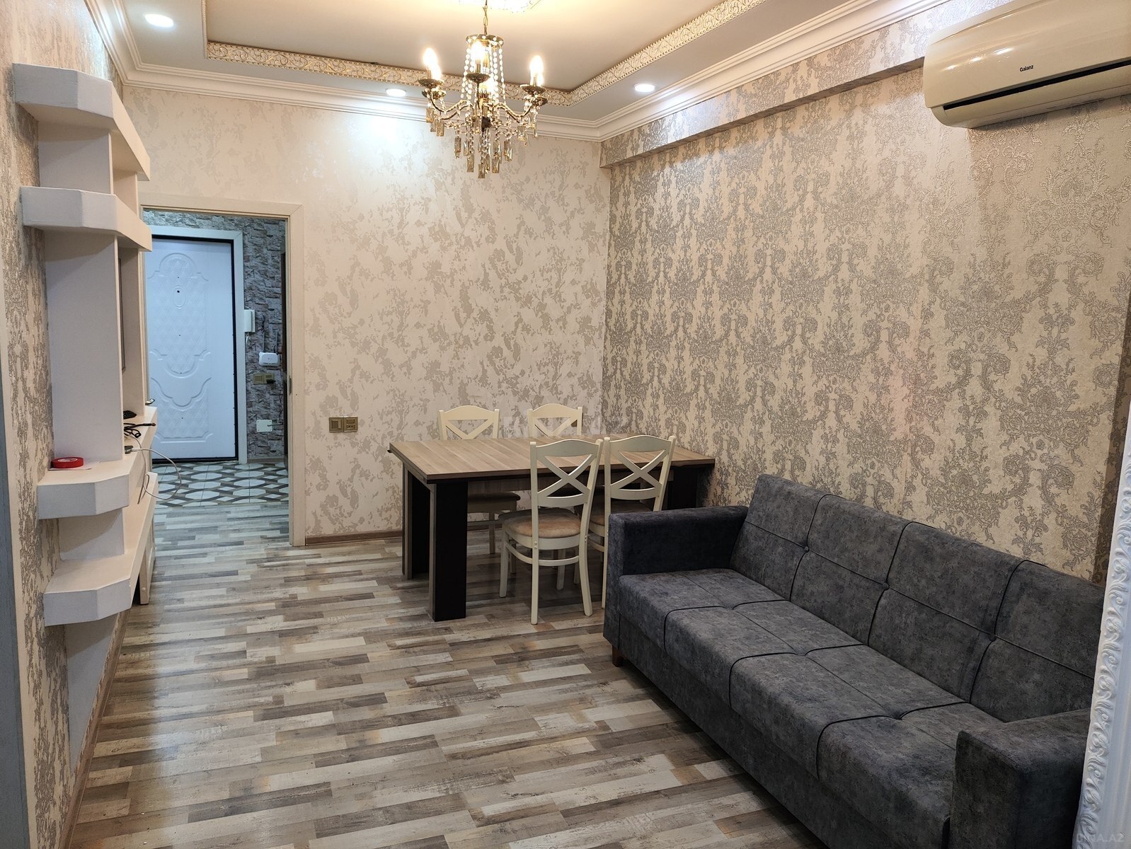 Mənzil Aaaf parkda məscidin yanında, bolmartın arxa məhəlləsində yerləşir. 2otaqdan əlavə uşaq üçün balaca otaq kəsilib. Tam əşyalıdır:tv,soyuducu,kondisioner,paltaryuyan,kombi sistemi və isti poldur. Məişət texnikası tam təzədir. Yalnız ailəyə və uzun müddətə verilir. Maklerlər narahat etməsin. Birinci ay 100₼ depozit alınacaq,ən sonda qaytarılmaq şərtilə.