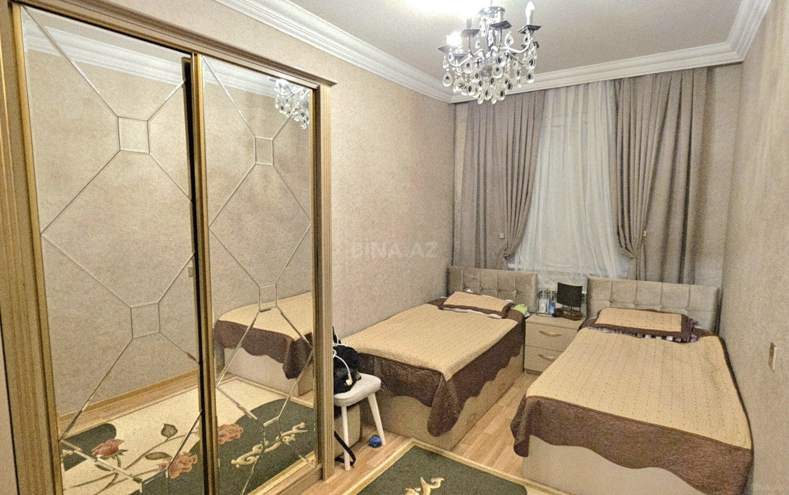 Şəhərin ən sakit və yaşıllıq ərazisində, Mir Cəlal küçəsində Araz market və Tərlan şadlıq evi ilə üzbəüz 5 mərtəbəli fransız layihəli binanın 3cü mərtıbəsində qanuni 2 otaqlı əla təmirli yeı çəkən mənzil sahibindən satışa çıxarılır. Mənzil keçən il tam təmir edilib. 1 bağlı balkonu var. binanın hər tərəfinə pəncərəsi var. Mənzil Kombi sistemi ilə təchiz olunub. mebel və məişət avadanlıqları ilə bir yerdə satışdadır. Alan adam təmir və əşya almağa vaxtı itirməyəcək yanı al və bir başa gir yaşa. Bu mənzilin minimal kirayə dəyəri 650 manatdan başlayır. Mərtəbə, təmir və planirovkasına görə dəyərindən aşağı satılır.