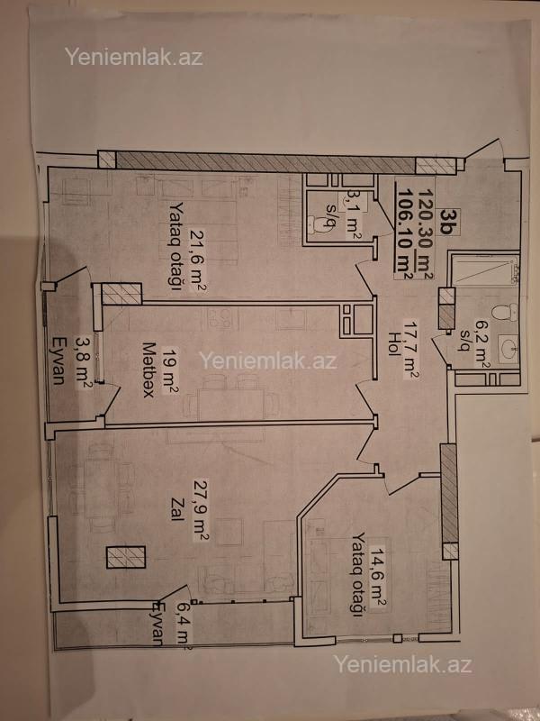 İnşaatçılar metrosu, Satılır 3 otaqlı 125 m² Yeni tikili