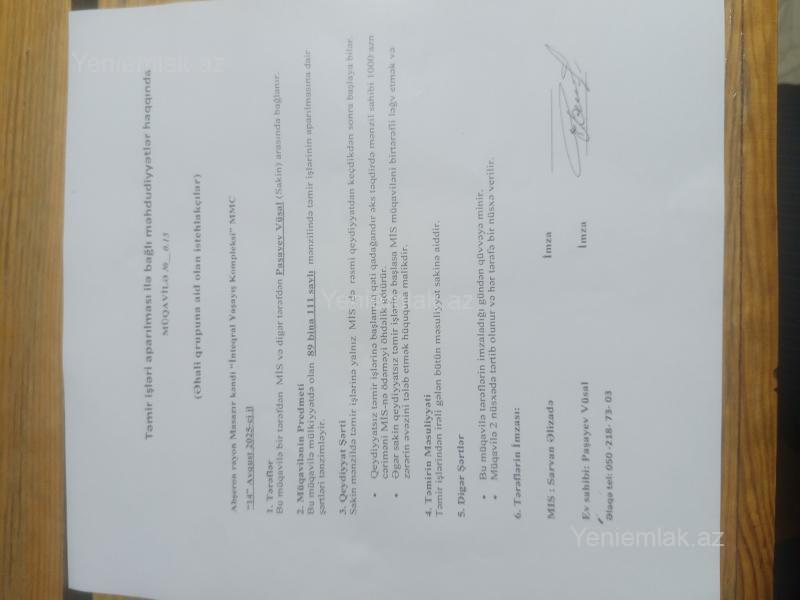 Quruluş-93 yaşayış masivində 1 otaqlı mənzil satılır.Mənzil öz şəxsi mənzilimdi ilk sahibiyəm.Bina-89,Blok-4,Mənzilin sahəsi-53.3 m2,Mənzil-111,Mənzil 6 mərtəbəli binan 5 ci mərtəbəsində yerləşir.Mənzil təmirsizdi.Ancaq rial alcılar narhat etsin.Qiymət 65.000 Azn dir müqavilə pulu alan adam tərəfdən ödəniləcək.Parkın düz yaxınlığındadır ətrafında yaşayış ücün hər şey var.Binada hal hazırda yaşayış var alan adam təmirnə başlaya bilər bina təhfil verilib.Alan adam rahatlıqla geniş 2 otaqa cevrə bilər cox geniş işıqlı balkonlu mənzildir.1-m2---1200 azn.quruluş-93 yaşayış masivi,İstiqaliyyət.küç.