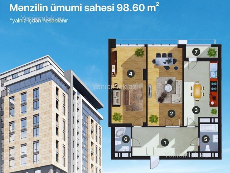 Azadlıq metrosunda Satılır 2 otaqlı 99 m² Yeni tikili