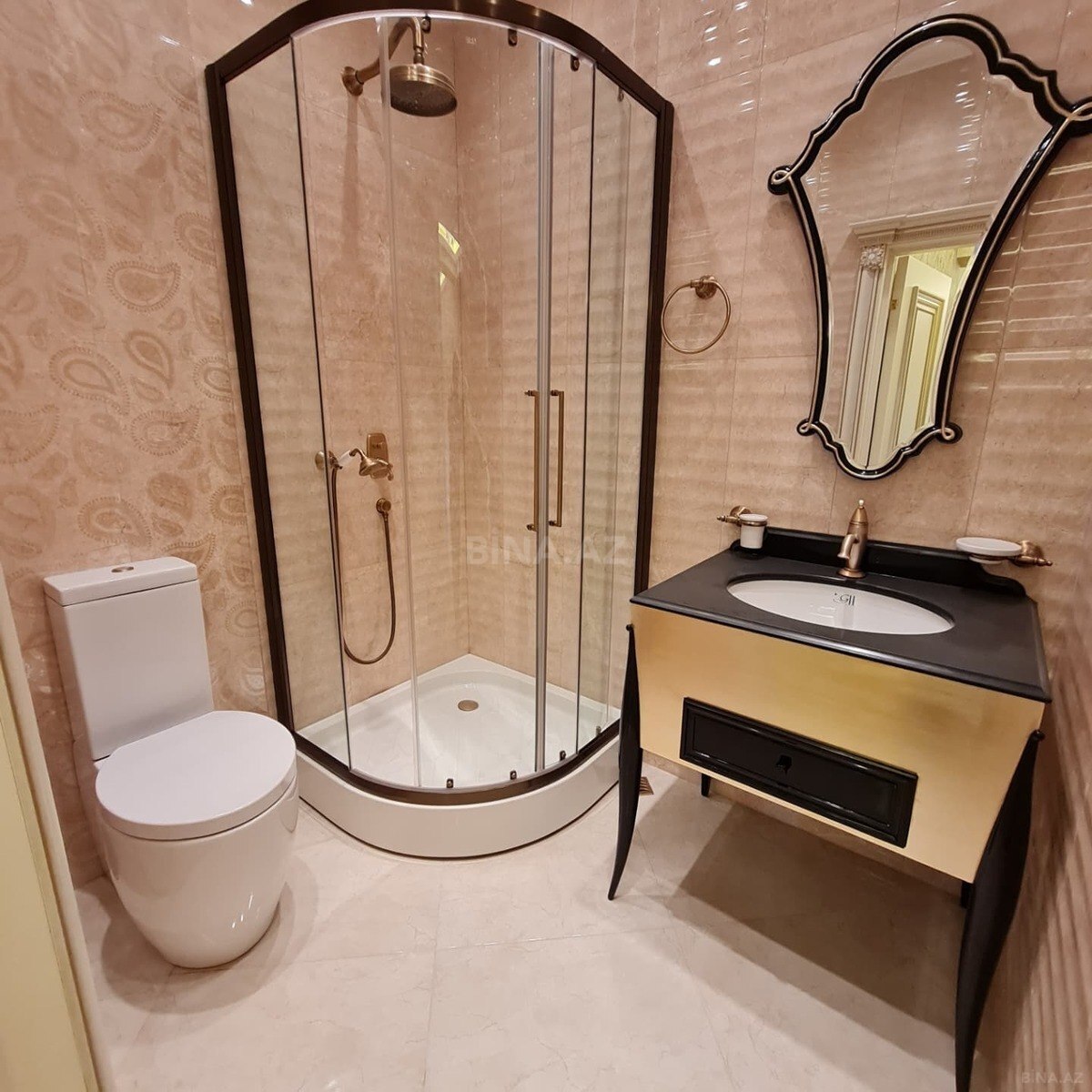 ÇOX TƏCİLİ! BİNADA QAZ VƏ KUPÇA VAR! H.Cavid prospektində, Elmlər-Akademiyası metrosunun yaxınlığında, elit və yaşayışlı yeni tikilidə 4 otaqlı mənzil satılır. Mərtəbə 18/15 Ümumi sahəsi 200 kv/m. Əla təmirli, ÇOX BAHALI TƏMİR! TƏMİRDƏN SONRA YAŞAYIŞ OLMAYIB! Döşəmə parket, bahalı oboylar və daxili qapılar, çilçıraqlar, bütün otaqlarda tavan işıqlanması. Mərkəzi istilik sistemi, 2 avadanlıqlarla təchiz edilmiş sanitariya qovşağı (biri yataq otaqında) duş kabina, İtaliya keramika və bütün aksesuarlarla təchiz edilib, quraşdırılmış mətbəx mebeli var. Suyu, isigi daimidi. Mərmər blok, 2 sürətli lift (1 yük) Siqma, yeraltı qaraj, 24 saat mühafizə olunan geniş həyəti, uşaq