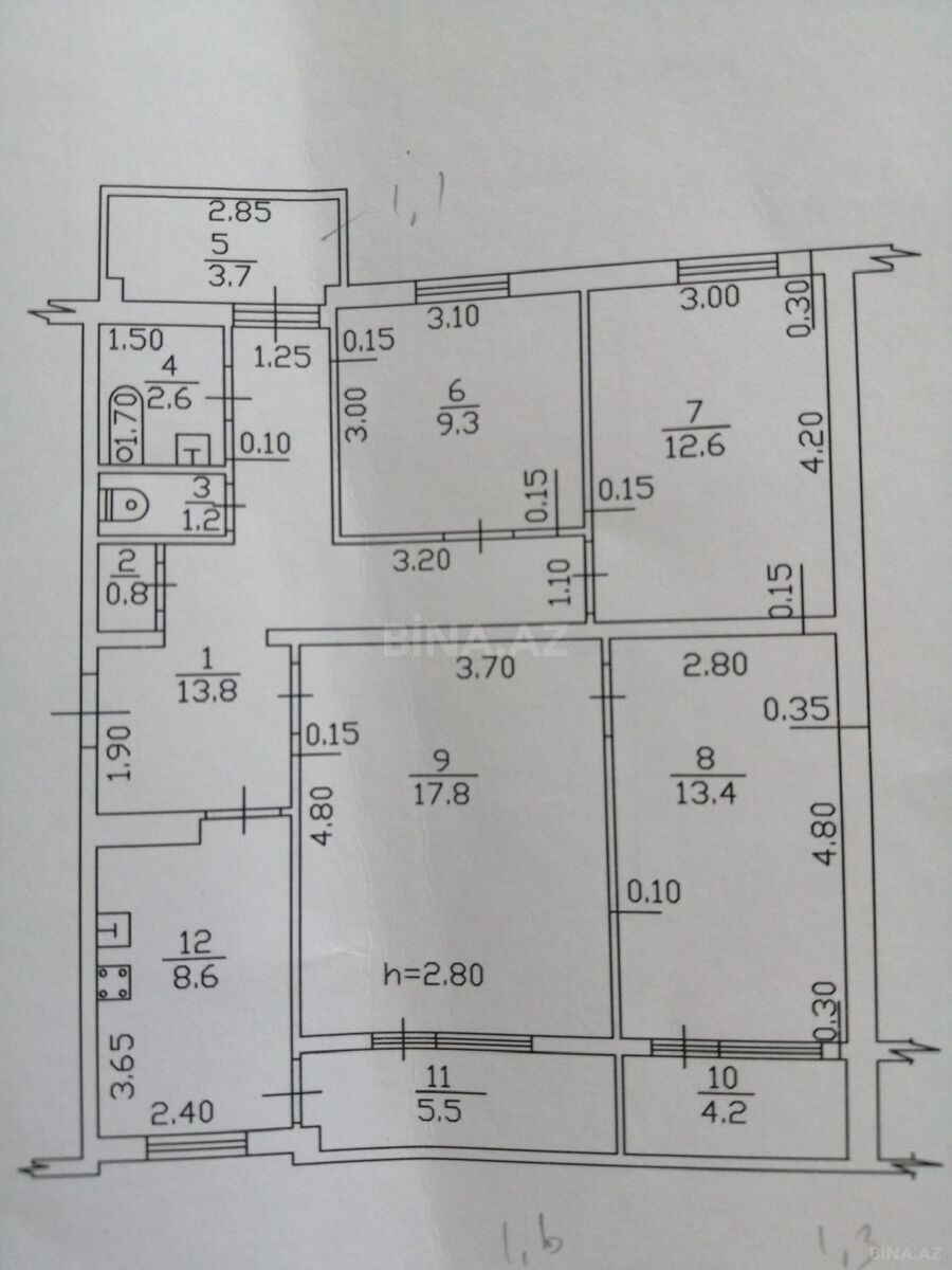 4 otaqlı köhnə mənzil