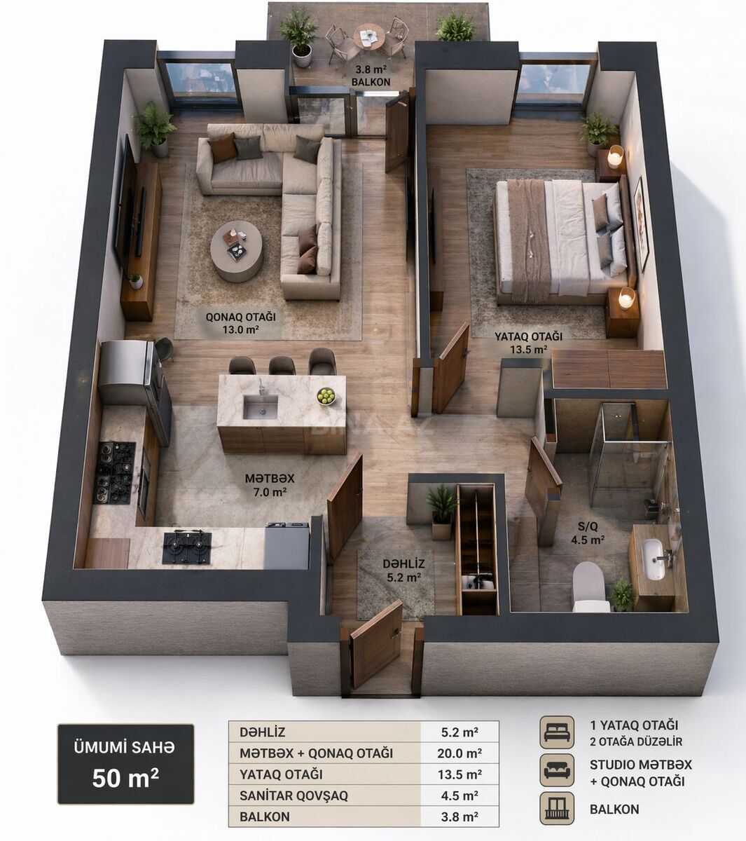 Sahə50m²
