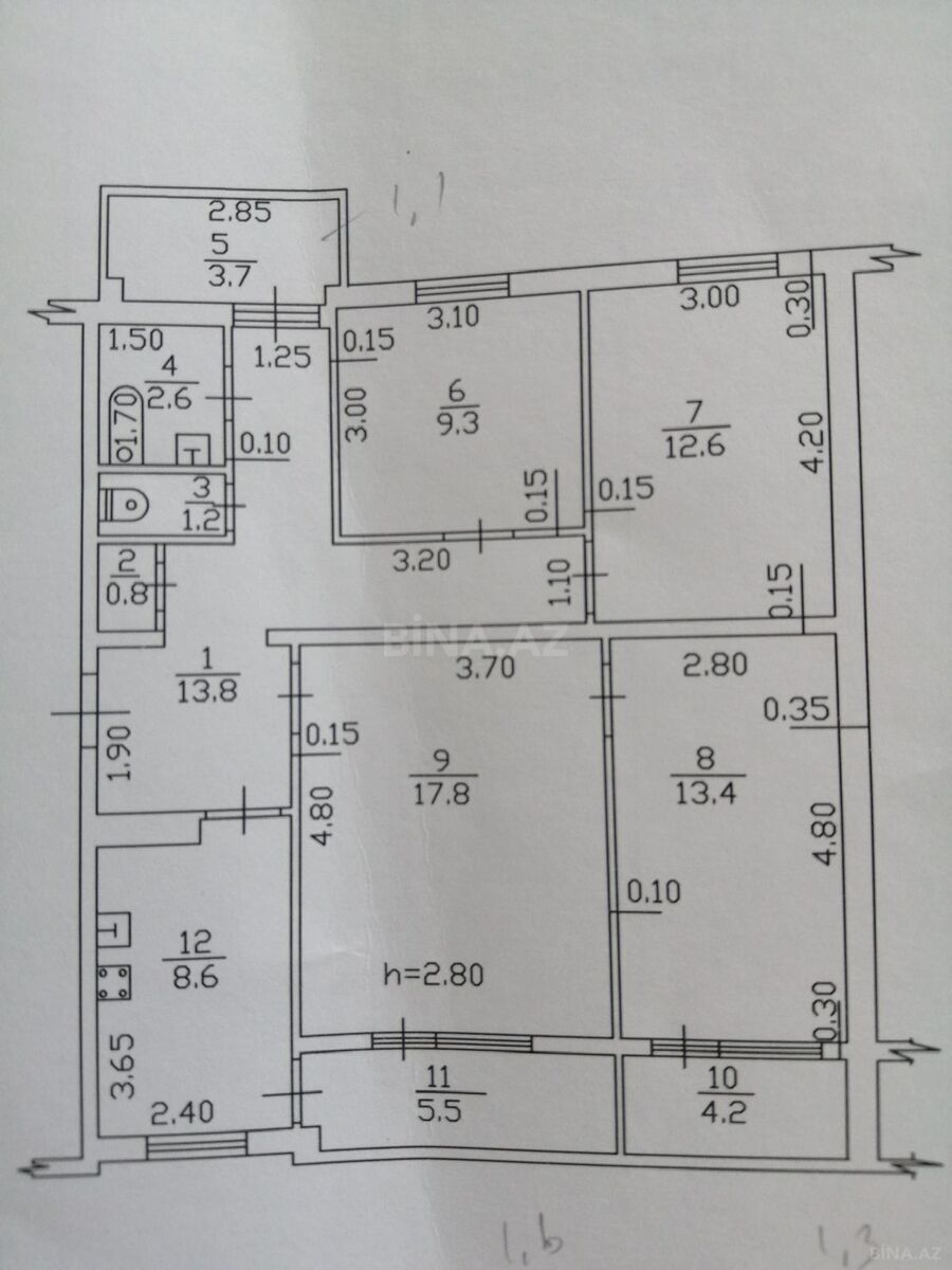 5 otaqlı köhnə mənzil