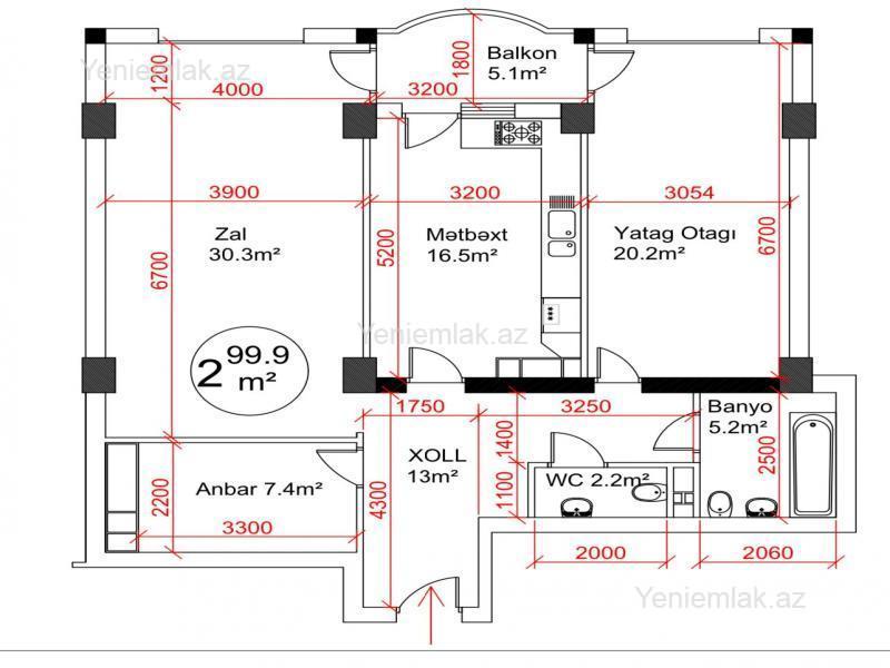 3 otaqlı yeni tikili