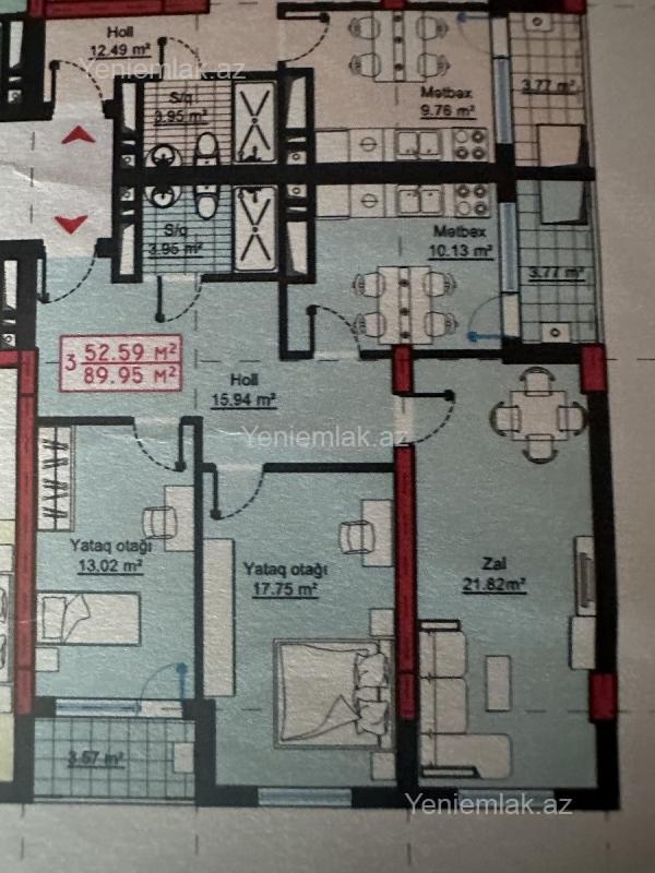 H. Aslanov metrosu, Satılır 3 otaqlı 90 m² Yeni tikili