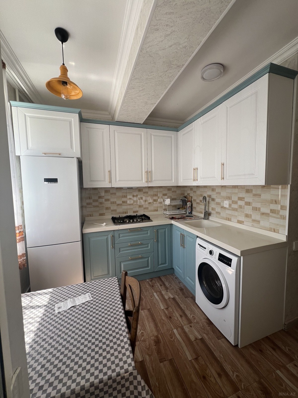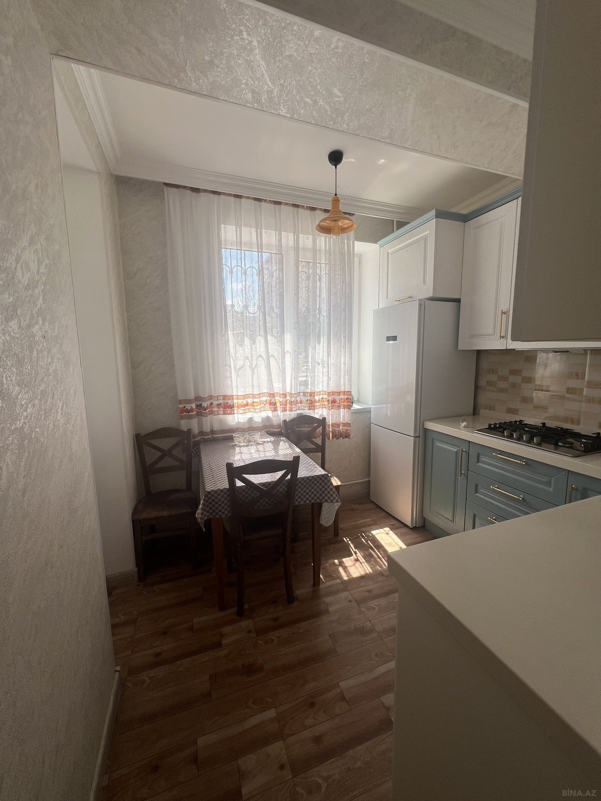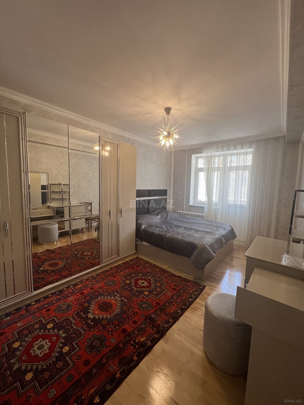 Bina Prezident Qvardiya iscilerinin binasidir.Menzil 1 ci mertebede amma yerden cox yuksekde yerleshir. Kupchada 63kv ,amma faktiki 70 kvdir. Ela temirlidir. Yeni temirden cixib. Yasayish olmayib. Butun bahali texnika ve son model mebeller ile techiz olunub. Eshyalar ile birlikde satilir. Gir ve yasha seviyyesindedir. Kombi sistemi ve isti pol( hamam, metbex ve dehlizde ) movcuddur. Otaqlar tam kvadrat sheklindedir. Skvaznoy menzildir. Her iki terefe baxan balkonu var. Gun dushen menzildir. Heyetde mashin saxlamaga genis yer var ve heyetin kenar mashinlarin girmemesi ucun shlaqbaumu var.Menzilin ozune mexsus quru podvali var.77 sayli avtobusun son dayanacaginda yerleshir ve etrafi butun iashe obyektleri ile( iri marketler, mekteb , bagca ve s ) zengindir.Menzil ozume mexsusdur. Qiymetde cuzi endirim olacaq.