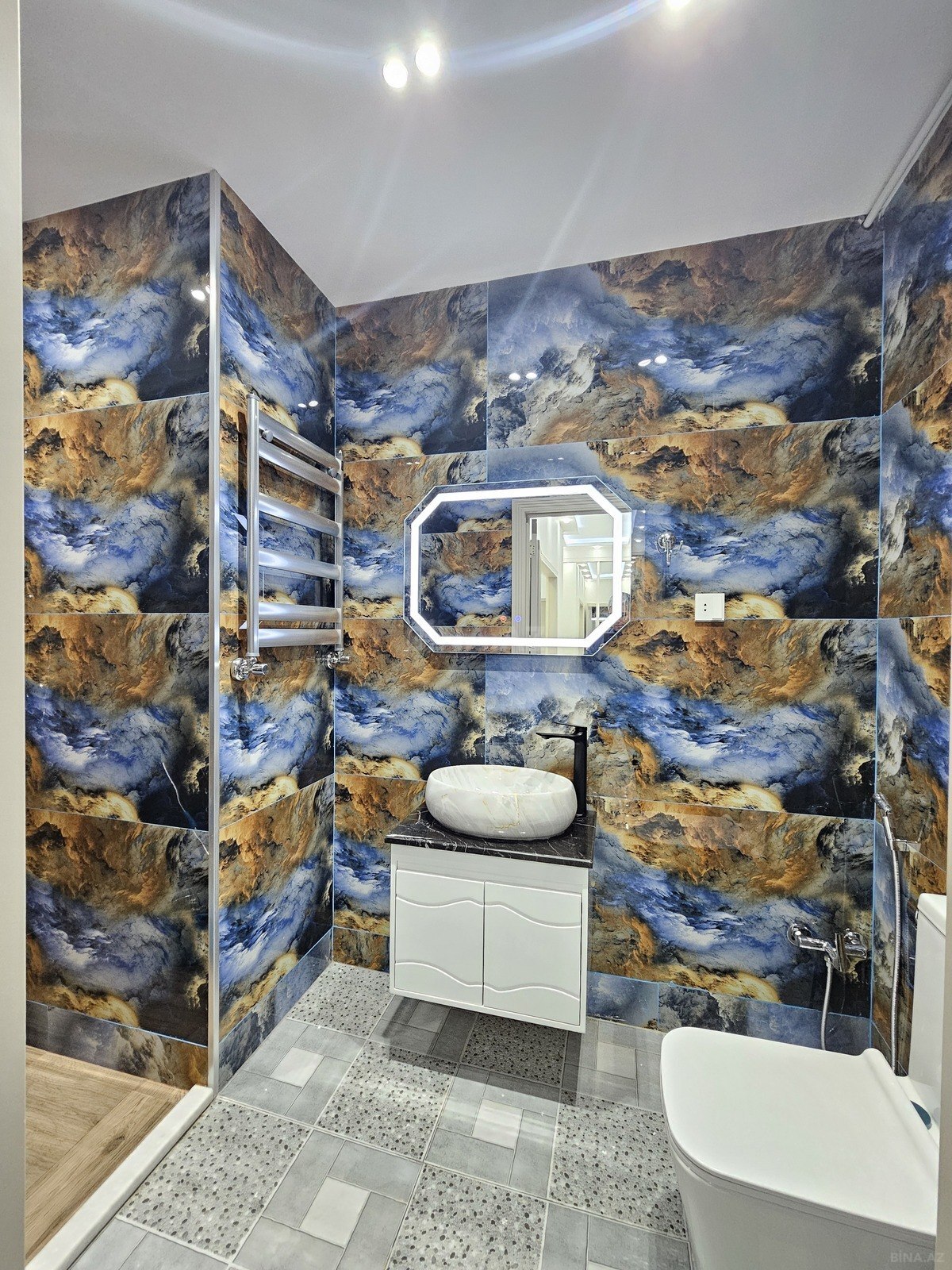 Günü-gündən dəyəri artan BLUE CİTY-də ƏN GÖZƏL və EKSKLÜZİV MƏNZİLDİR! Bu kompleksdə hazırda satışda olan mənzillər içərisində ən baxımlı mənzildir. Tam əşyalı satılır. Mənzilə aid videoçəkiliş var, maraqlanan real müştərilərə göndərə bilərik. Həm şəxsi yaşayış, həm də kirayə vermək üçün əla təklifdir. Adres: Mənzil Xırdalan şəhərində, Qafqaz Universiteti (Bakı Mühəndislik) yaxınlığında, Blue City kompleksində yerləşir. Növ : yeni tikili Mərtəbə : 11/15 Otaq sayı: 2 otağa düzəlib Sahə: 63 kv.m Təmir: əladır. Sənəd: şirkətdaxili müqavilə (etibarlı şirkətdir, Blue City) Qiymət: 141 900 manat Mənzil xüsusi zövqlə təmir edilib. İstilik sistemi kombidir. Bahalı mətbəx mebeli quraşdırılıb, sanitar qovşaq aksesuarlarla təchiz edilib. Kafel hissələr isti-poldur. 135 və 199 saylı şəhər avtobuslarının dayanacağı kompleksin yanında yerləşir. Mənzilin təmiriylə yanaşı mebellər də bahalıdır. Sərfəli təklifdir. Əldə etməyə tələsin. Ətraflı məlumat üçün buyurun, zəng edin