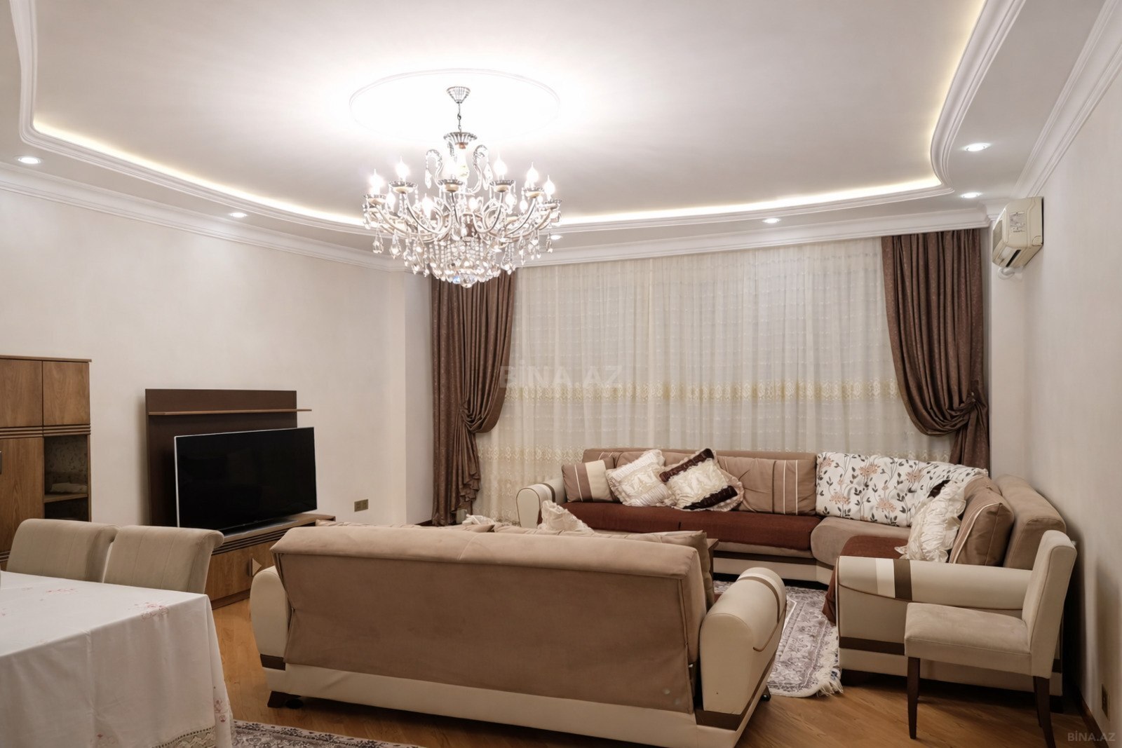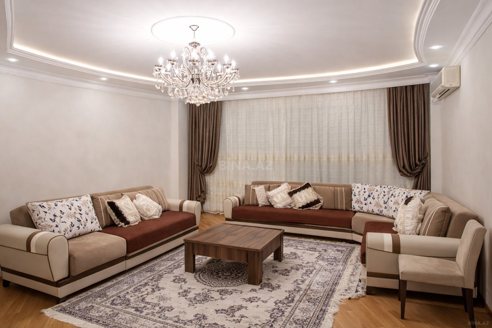 Şəhərimizin Xətai rayonu, Həsən Salmani küçəsində, 28 May və Xətai metro stansiyalarının, Mediland Hospitalın, Dost Xidmətin yaxınlığında, Ali Məhkəmə ilə üzbəüz, Neftçilər xəstəxanasının arxasında Leyla Şıxlinski klinikasının yanında yerləşən Sahil MTK binasında kirayə mənzil təklif edilir. 16 mərtəbəli binanın 4-cü mərtəbəsində yerləşən mənzilin ümumi sahəsi 142 kv.m-dir və 3 otaqdan ibarətdir. Mənzil təmirli və tam əşyalıdır, aylıq 1250 AZN-ə kirayə verilir. Mənzil geniş zal, 2 yataq otağı, mətbəx, holl və 2 sanitar qovşaqdan ibarətdir. Mətbəxdə paltaryuyan, soyuducu, soba və lazım olan digər avadanlıqlar mövcuddur. Mənzildə istilik sistemi kombidir, həmçinin soyutma sistemi də mövcuddur. Binanın geniş həyəti və uşaqlar üçün oyun meydançası var. Ətrafında marketlər, məktəb, bağça və bir sıra iaşə obyektləri yerləşir. Maraqlanan şəxslər buyurub müraciət edə bilərlər.