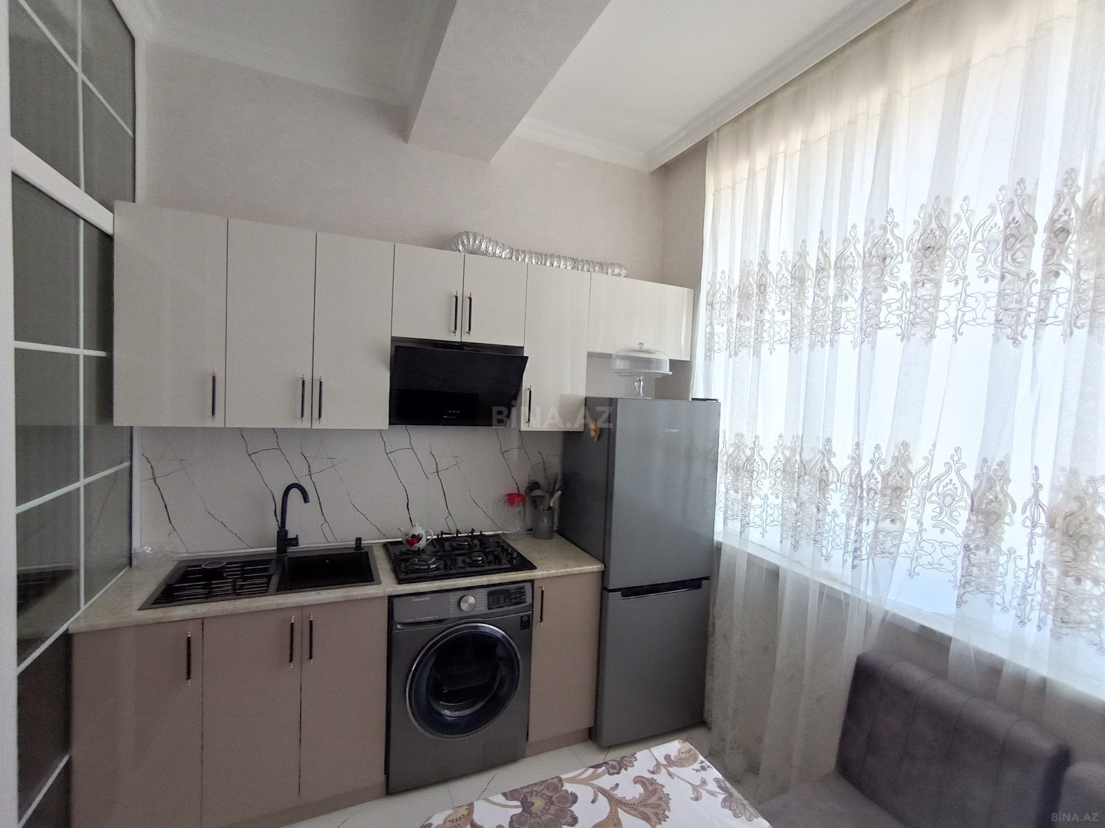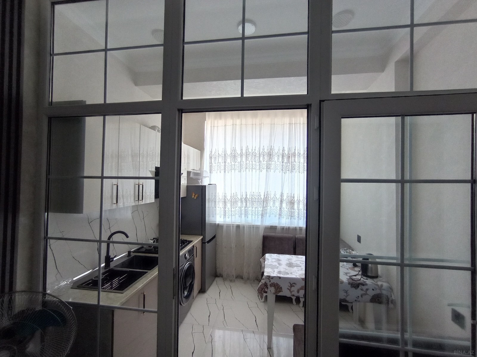 Salam, ev yalnız ailəyə verilir. Evin hər bir şəraiti var. Hər bir yanda yerdən isitmə sistemidir. İşıq, su, qaz daimidir. Lift var, marşruta və marketlərə yaxındır. Əşyaları ilə birgə verilir. Qiymət 400 manat.