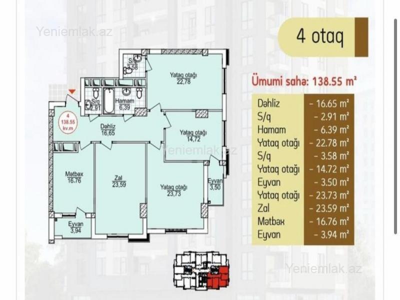 Azadlıq metrosu, Satılır 4 otaqlı 139 m² Yeni tikili