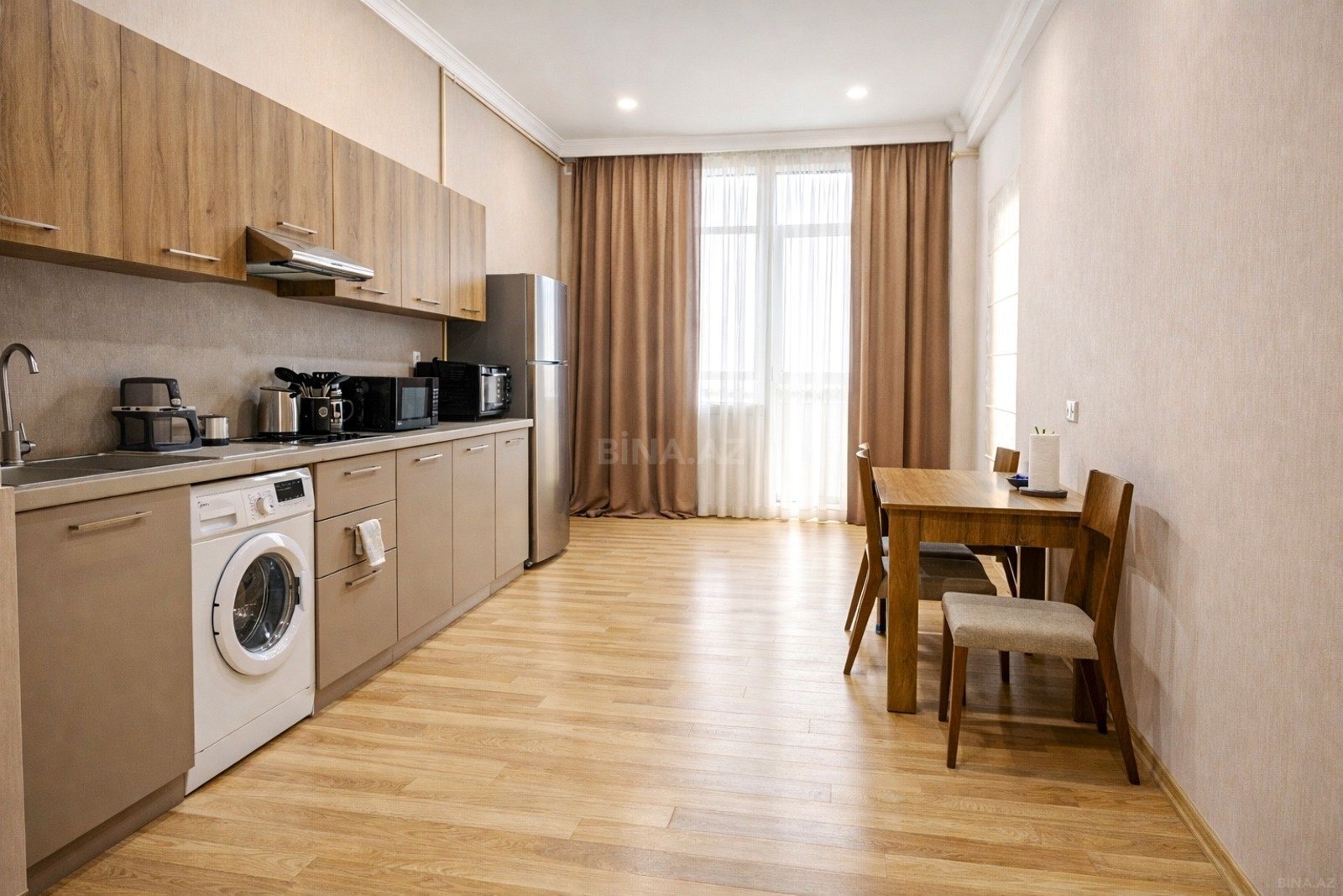 Azərbaycan dilində 3 otaqlı premium mənzil – New Zeon Residence (Olimpiya kəndi) Şəhər: Bakı Rayon: Nizami Metro: Koroğlu Mərtəbə: 8/9 Sahə: 150 m² Otaq sayı: 3 Təmir: Premium təmirli Ünvan: Heydər Əliyev prospekti 205 Mənzil haqqında: New Zeon Residence (Olimpiya kəndi) kompleksində yerləşən komfortlu və geniş mənzil: Geniş mətbəx və qonaq otağı 2 yataq otağı 3 sanitar qovşağı Böyük lodjiya Tam təchizat: duxovka, soyuducu, paltaryuyan Kondisioner və TV Kommunal xərclər qiymətə daxildir Kompleks və təhlükəsizlik: 24/7 mühafizə Uşaq meydançası Baxımlı həyət Pulsuz parkinq BRAVO hipermarket (24/7) İmkanlar: Tennis, futbol, voleybol, basketbol meydançaları Barbekü və istirahət zonası Kovorkinq Kafe, gözəllik xidmətləri Master-klasslar və tədbirlər Uşaqlar üçün: Rəsm, musiqi, aktyorluq və inkişaf proqramları Yerləşmə: Şəhər mərkəzi – 10–15 dəq Koroğlu – ~300 m Bakı Olimpiya Stadionu – 2–3 km Milli Gimnastika Arenası – yaxınlıqda Heydər Əliyev Mərkəzi – ~4.5 km Dillər: Azərbaycan, rus, ingilis və türk dillərində xidmət Qiymət: 1125 AZN На русском Премиум 3-комнатная квартира – New Zeon Residence Город: Баку Район: Низами Метро: Кёроглу Этаж: 8/9 Площадь: 150 м² Комнат: 3 Ремонт: премиум Адрес: проспект Гейдара Алиева, 205 О квартире: Просторная гостиная и кухня 2 спальни 3 санузла Большая лоджия Полностью оборудована техникой Кондиционер и ТВ Коммунальные услуги включены Комплекс: Круглосуточная охрана Детская площадка Ухоженная территория Бесплатная парковка BRAVO (24/7) Инфраструктура: Спортивные площадки Барбекю зона, коворкинг Кафе, сервисы Мероприятия для резидентов Локация: Центр — 10–15 мин Кёроглу — ~300 м Бакинский Олимпийский стадион — 2–3 км Национальная гимнастическая арена — рядом Центр Гейдара Алиева — ~4.5 км Цена: 1125 AZN In English Premium 3-room apartment – New Zeon Residence City: Baku District: Nizami Metro: Koroglu Floor: 8/9 Area: 150 m² Rooms: 3 Condition: Premium renovated Address: 205 Heydar Aliyev Avenue About the apartment: Spacious living room & kitchen 2 bedrooms 3 bathrooms Large loggia Fully equipped Air conditioning & TV Utilities included Residence features: 24/7 security Playground Landscaped yard Free parking BRAVO (24/7) Amenities: Sports areas BBQ & coworking Cafes & services Community events Location: City center – 10–15 min Koroglu – ~300 m Baku Olympic Stadium – 2–3 km National Gymnastics Arena – nearby Heydar Aliyev Center – ~4.5 km Price: 1125 AZN / month