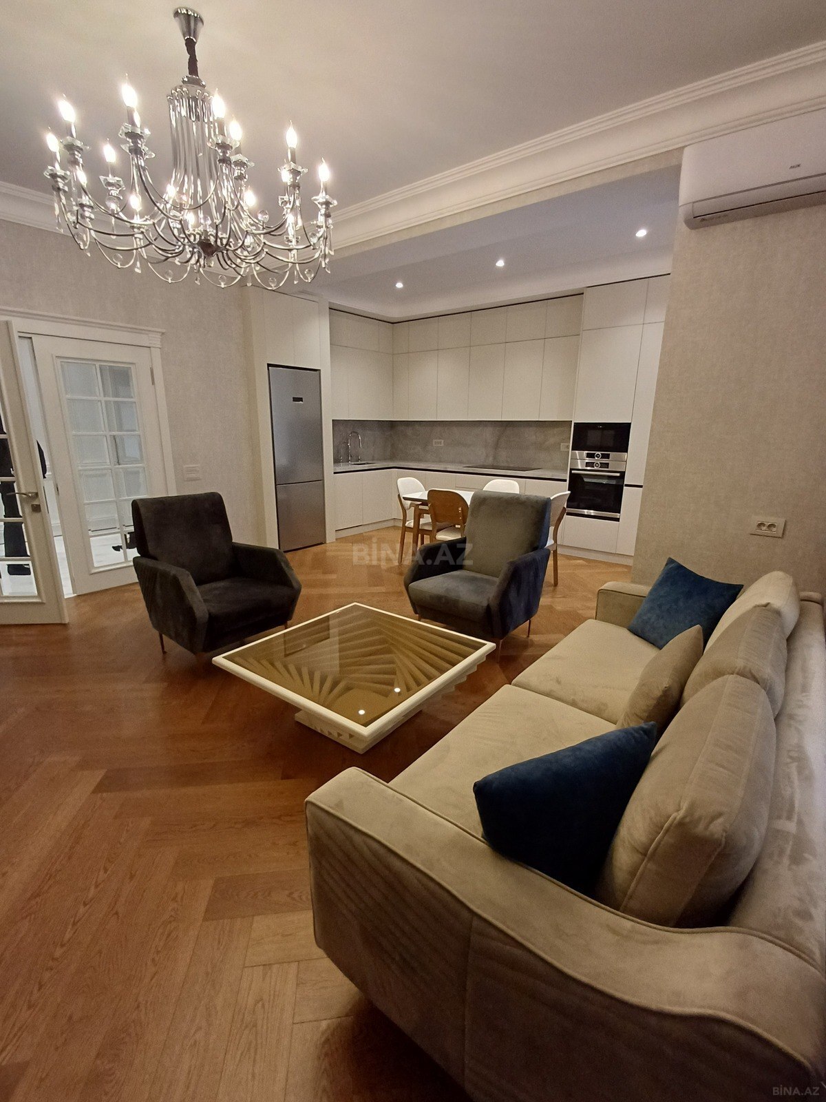 Renesans Palace-da 2 otaqlı premium mənzil kirayə verilir Tam təmirli və tam əşyalı mənzil kirayəyə təqdim olunur. Mənzildə təmirdən sonra yaşayış olmayıb – bütün əşyalar yenidir və istifadə olunmayıb. Sahə: 90 kv.m Otaq sayı: 2 İstilik və soyutma sistemi: fankoil (komendant ödənişinə daxildir) Parking mövcuddur Rahat və yüksək səviyyəli yaşayış üçün ideal seçimdir. Ətraflı məlumat üçün zəng edin. Maklerəm.