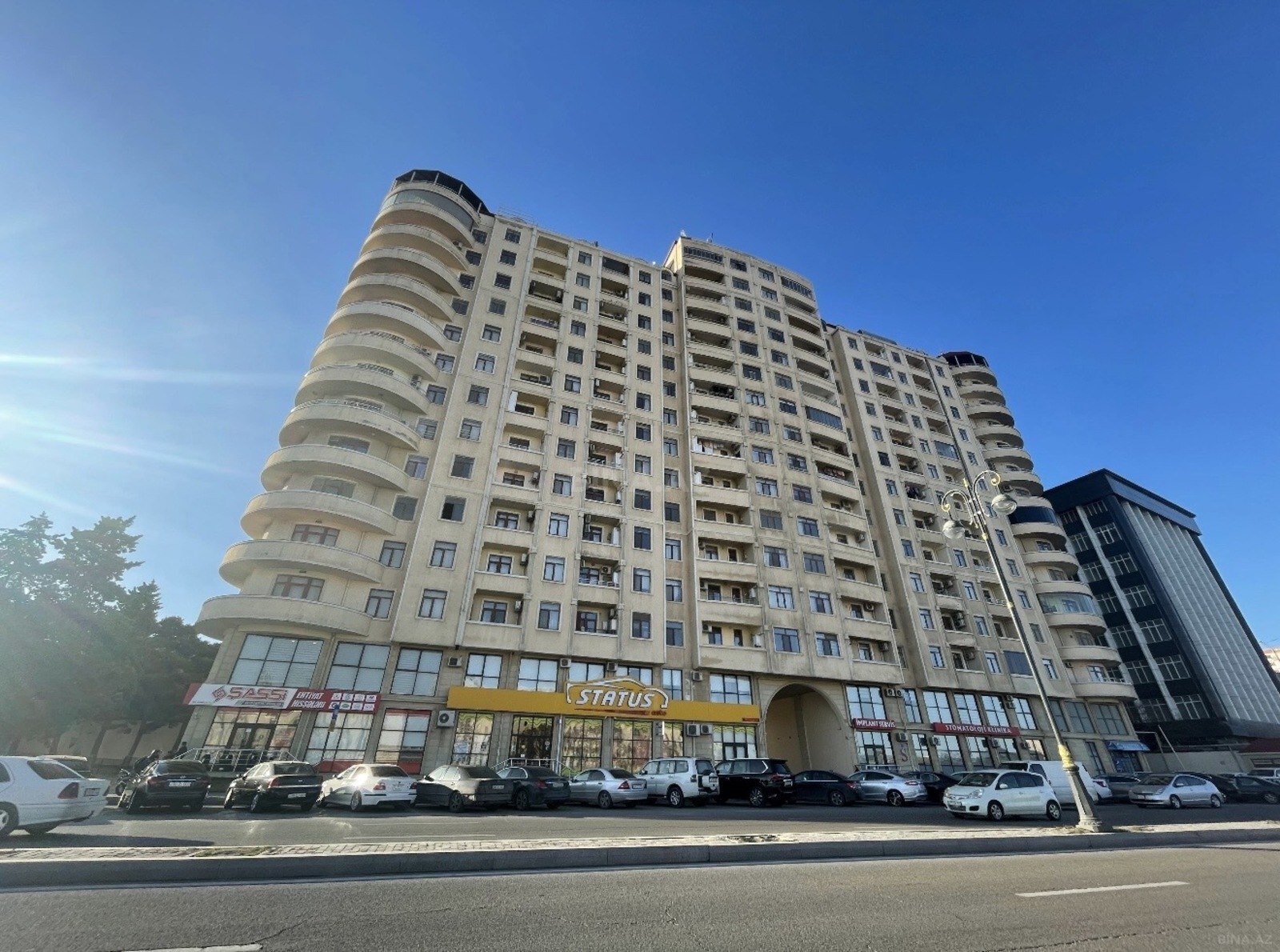 Ümumi sahəsi 150kv, geniş, işıqlı 3 otaq, həm yola həm həyətə baxan 2 balkon mövcuddur. Yaşayış üçün bütün lamızi avadanlıqlarla təchiz olunmuşdur. Qaz,su,işıq daimi, 2 ədəd lift, 7/24 mühafizə. Binanın önündə parking həmçinin binanın özünün qarajı da mövcuddur. İctimai TV'nin tam yanında yerləşir