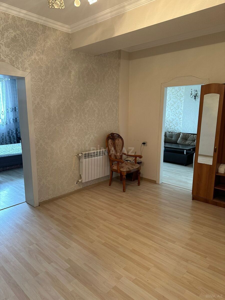 Bakıxanov qəsəbəsində Bakıxanov ticarət evinin yanında 12 mərtəbəli yeni tikili binanın 11-ci mərtəbəsində 96 m2 olan qanuni 2 otaqlı mənzil kirayə verilir. Mənzil 2 otaqlı olmağına baxmayaraq çox genişdir lazım olan bütün əşyalar mövcuddur. Əlavə yataq var kim istəməsə çıxara bilərik. Sanuzel ayrıdır hər ikisidə isti pol ilə döşənib. Təmirli və səliqəlidir. Bina 24 saat mühafizə sistemi ilə qorunur.iki mərtəbəli yeraltı parking binanın altında supermarket və başqa mağazalar var. Uzun müddətli ailə ilə qalmaq istəyən ciddi şəxslərə verilir.