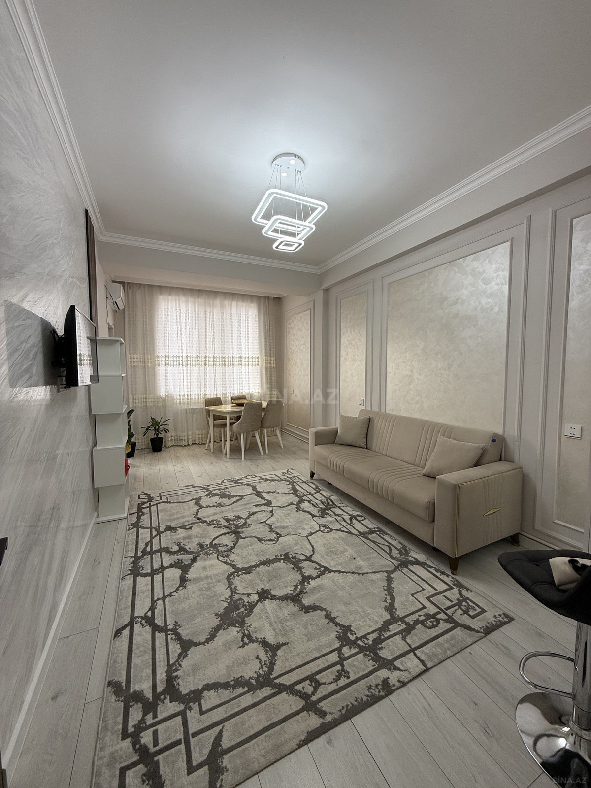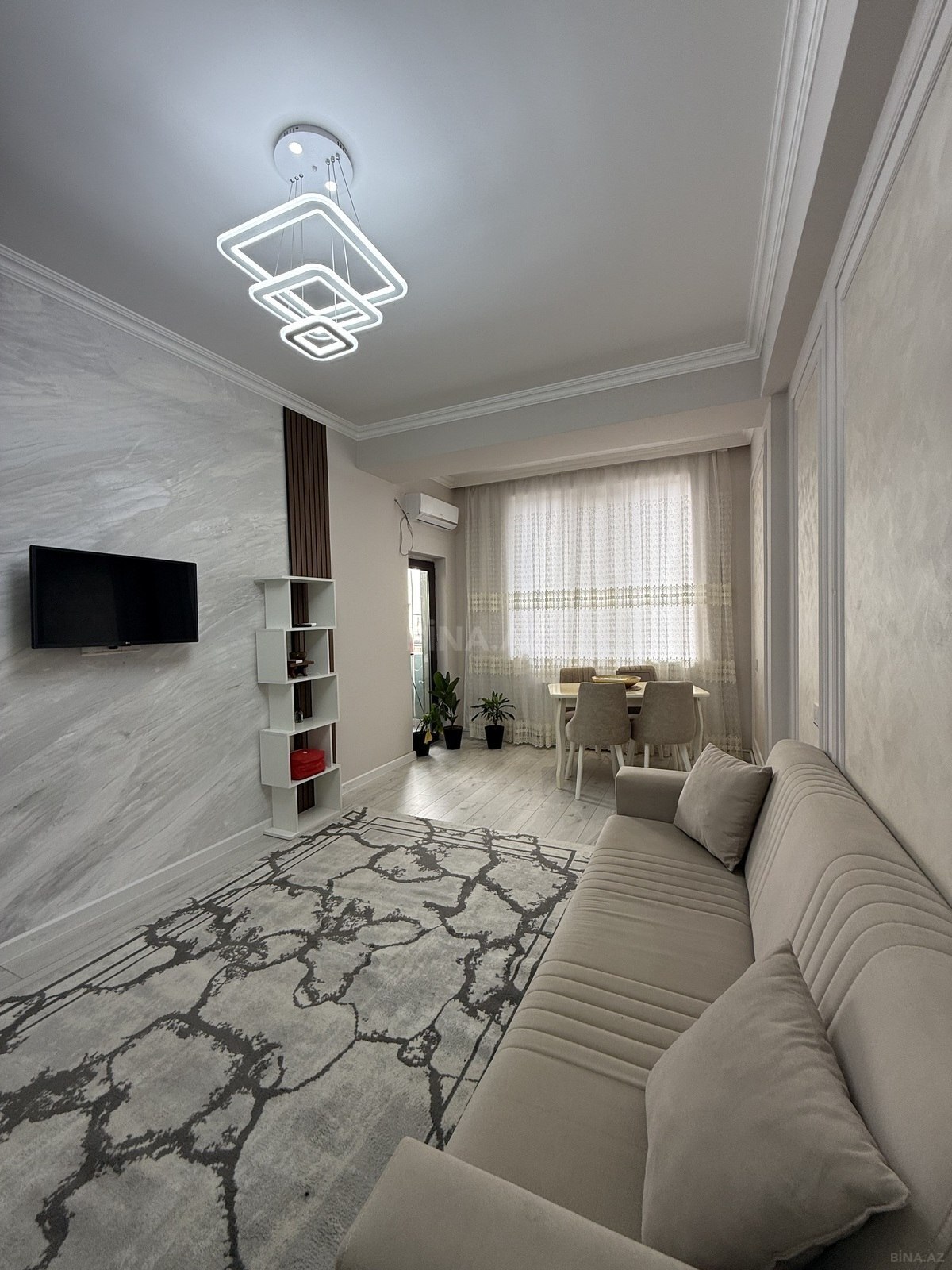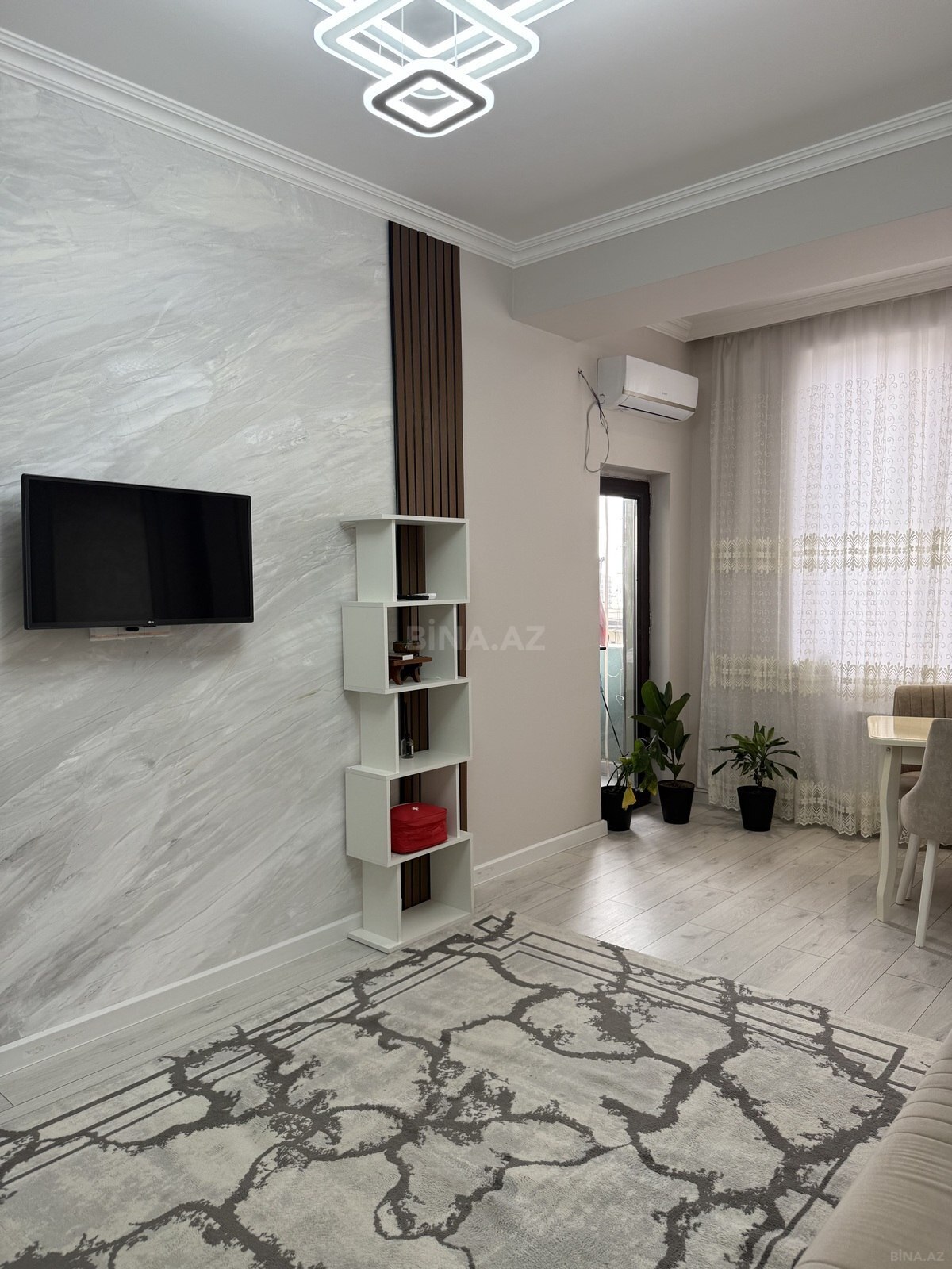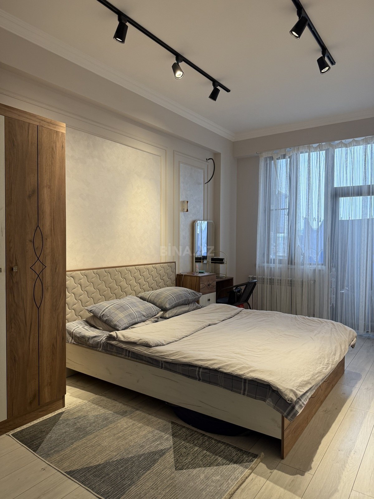 Genclik parkinin yani yeni tikili 16/9 yeraltı parking var Tam temirli esyali Kondisioner soyuducu paltaryuyan tam esyalidir eyvani var panorama super Ofis Xidmet haqqi 30%