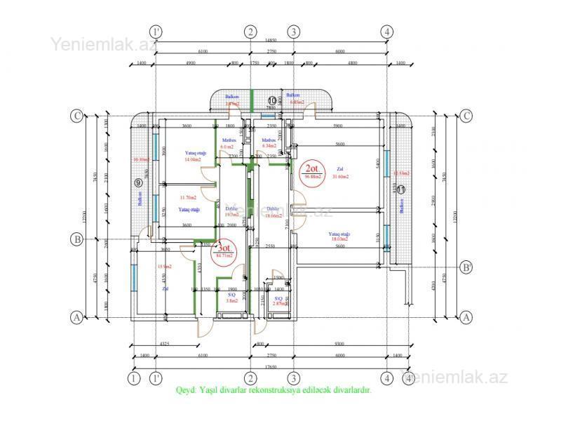 Heydər Əliyev Mərkəzinin qarşısı Yeni tikili 4 otaqlı pod mayak mənzil 16 -cı mərtəbə, 2 lift Üstü mansard yaşayış Ümumi sahəsi 181 m² 3 otaqlı (84.71m²) və 2 otaqlı (96.88 m²) mənzillərə bölünüb Hər birini girişi blokdandır Hər mənzilin iki eyvanı var Qaz, su, işıq fasiləsiz Sənəd çıxarış (dəyişərək hər mənzilə ayrı çıxarış almaq mümkündür) Qiymət 1 m² - 2500 ₼ Vasitəçinin xidmət haqqı 1%.Həsənoğlu küçəsi.