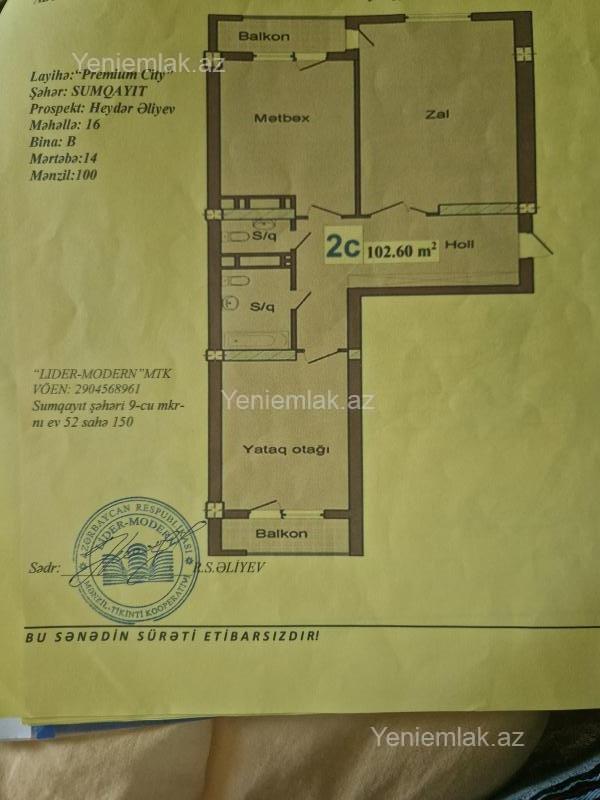 Sumqayıtda Satılır 2 otaq 103 m² Yeni tikili, 14/17 mərtəbə