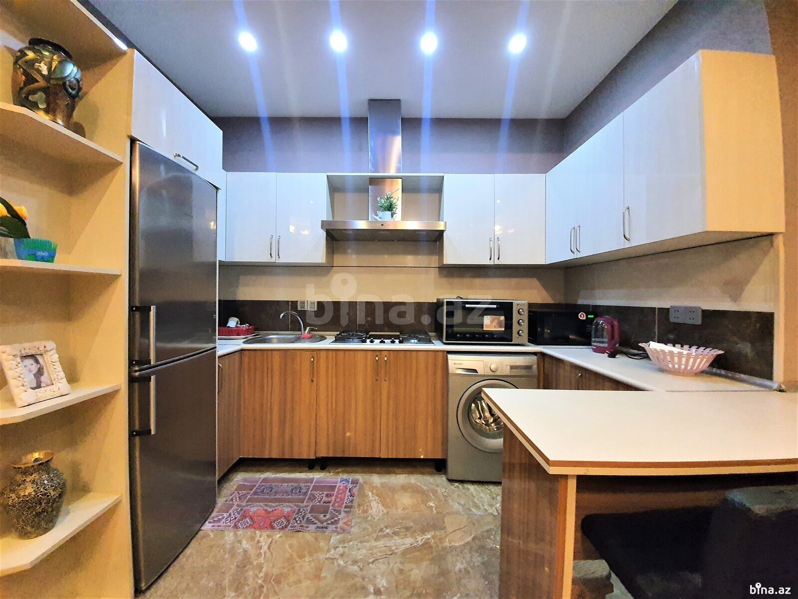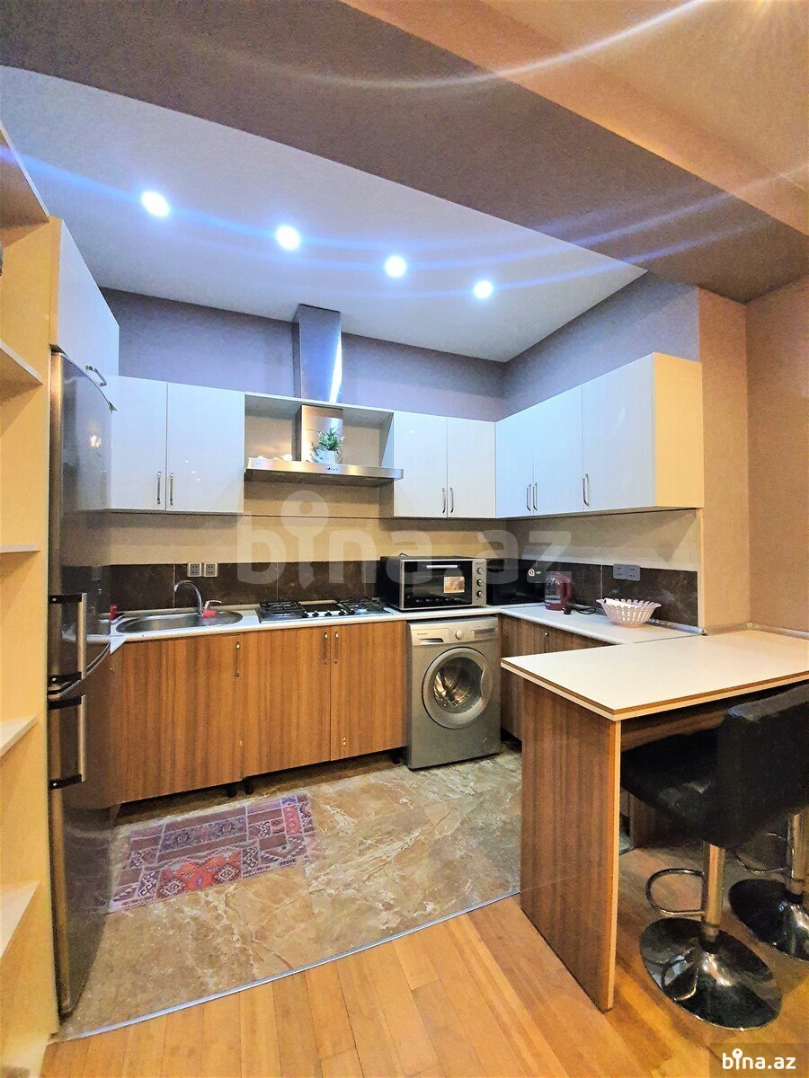 KOD 1118 Хатаинский район, рядом с Верховным Судом, в элитном жилом комплексе сдаётся 3-х комнатная квартира. Этаж: 6/20. Общая площадь 100 кв.м., 1 открытый балкон. 1 с/ у. Отличный ремонт. Раздельные комнаты. Пол (паркет). КAТВ, интернет-wifi, плазменный телевизор. «КОМБИ», 2 сплит-кондиционера. Встроенная кухня с бытовой техникой. Коммуникации 24 часа. Охраняемый двор, 2 скоростных лифта, парковочные места, подземный гараж, детская площадка. --------- KOD 1118 Xətai rayonu, Ali Məhkəmə yaxınlığında, tam yaşayışlı yeni tikilidə 3 otaqlı mənzil kirayə verilir. Ümümi sahəsi 100 m2. Mərtəbə: 6/20. 1 açıq eyvanı, 1 s/q. Əla təmirli. Otaqlar ayrı-ayrılıqda. Parket döşəmə. KATV, internet-wifi. “KOMBI”, plazma tv. 2 split-kondisionerlər. Quraşdırılmış mətbəx mebeli. Mühafizə olunan həyəti, 2 sürətli liftlər, yerüstü və yeraltı dayanacaqlar, uşaq meydançası.